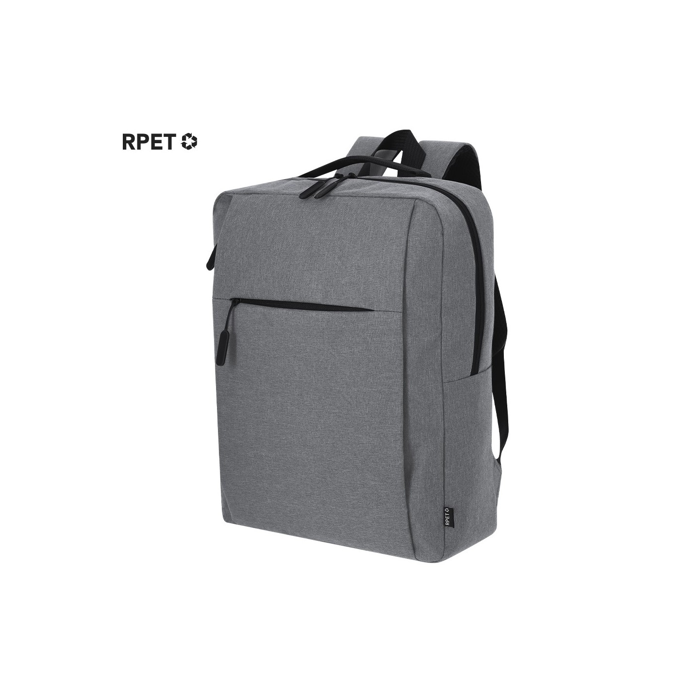 La Mochila MAXTRY, fabricada en poliéster RPET, cuenta con múltiples bolsillos y un diseño acolchado. Personalizable, ideal para empresas y viajes.