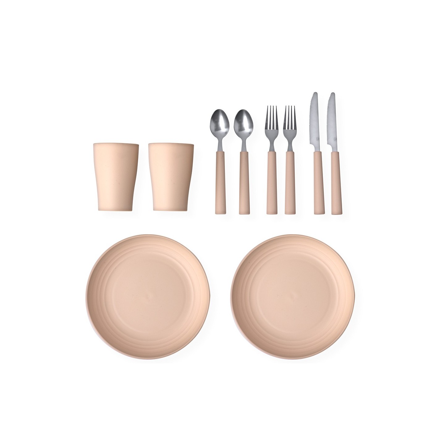 - 2 vasos - 2 cuchillos - 2 cucharas - 2 tenedores y 2 platos