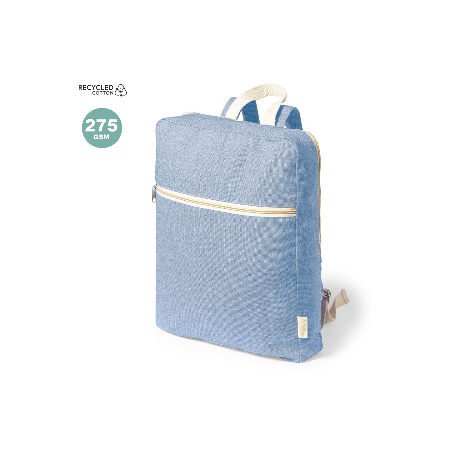 La mochila Nidoran es una opción sostenible y ecológica, fabricada con algodón 100% reciclado GRS de 275g/m2. Cuenta con compartimento principal y bolsillo frontal con cierre de cremallera, así como asa de transporte y cintas para hombros ajustables a juego. Disponible en varios colores y con distintivo de algodón reciclado en la etiqueta exterior.