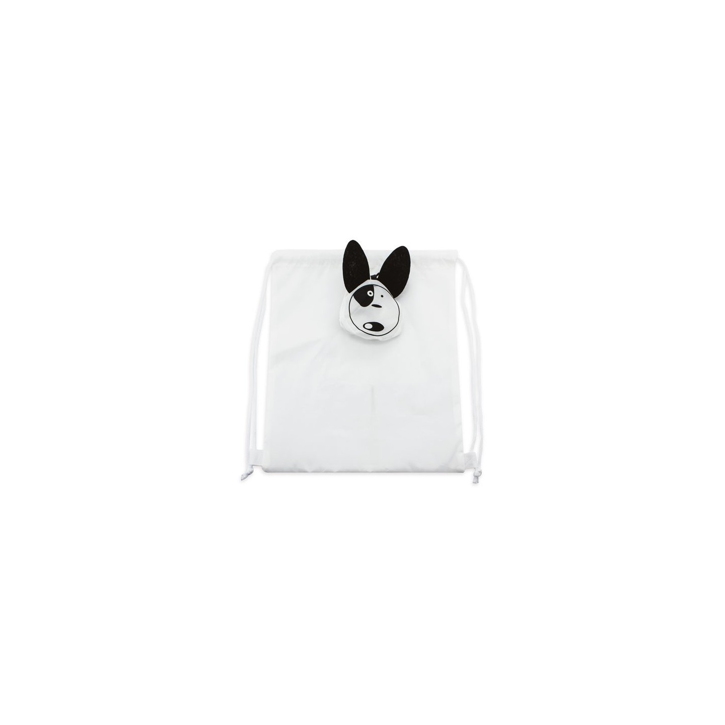 Mochila infantil plegable y ajustable con diseño de perro. Fabricada en POLIÉSTER 190T, incluye enganche tipo mosquetón. Perfecta para personalizar y regalar