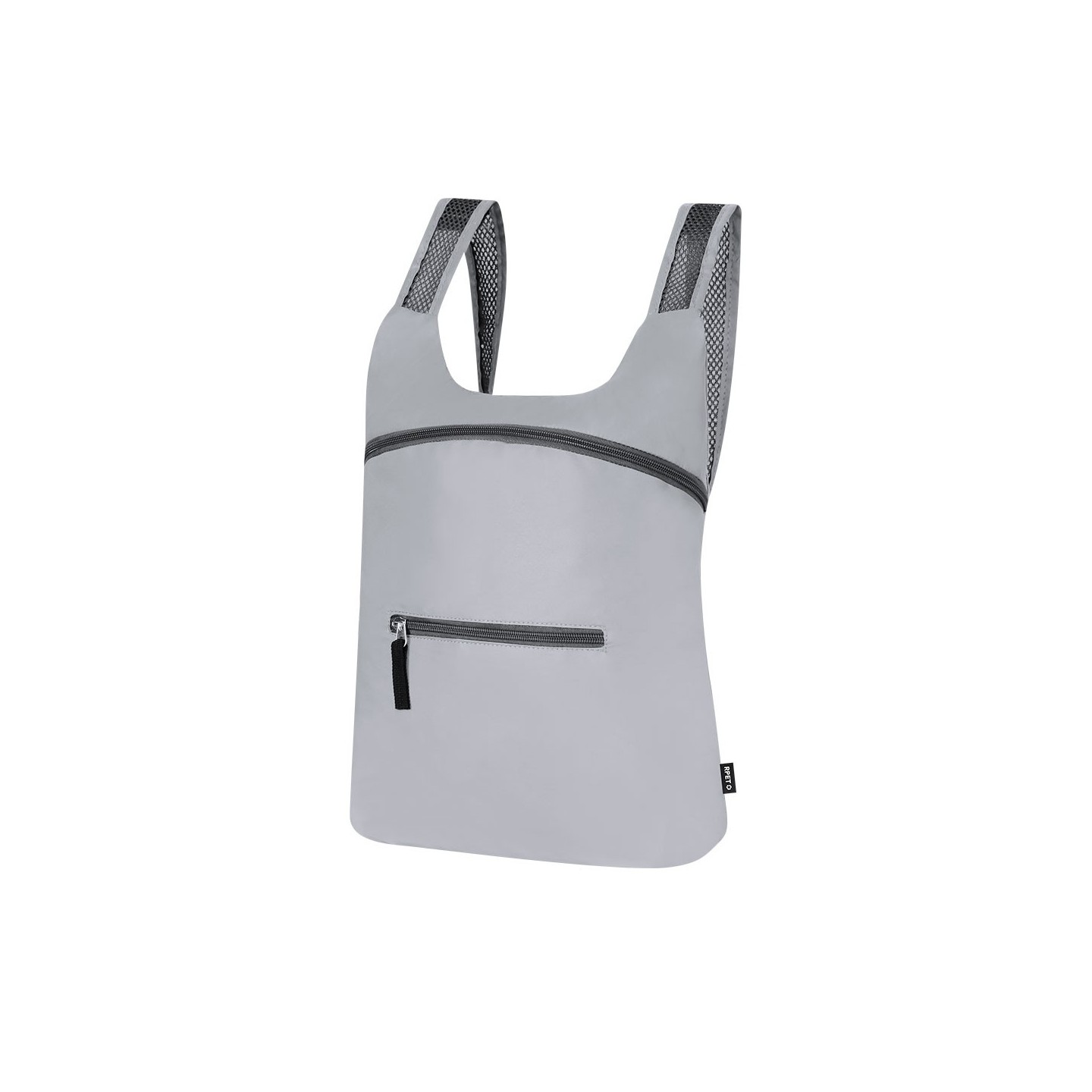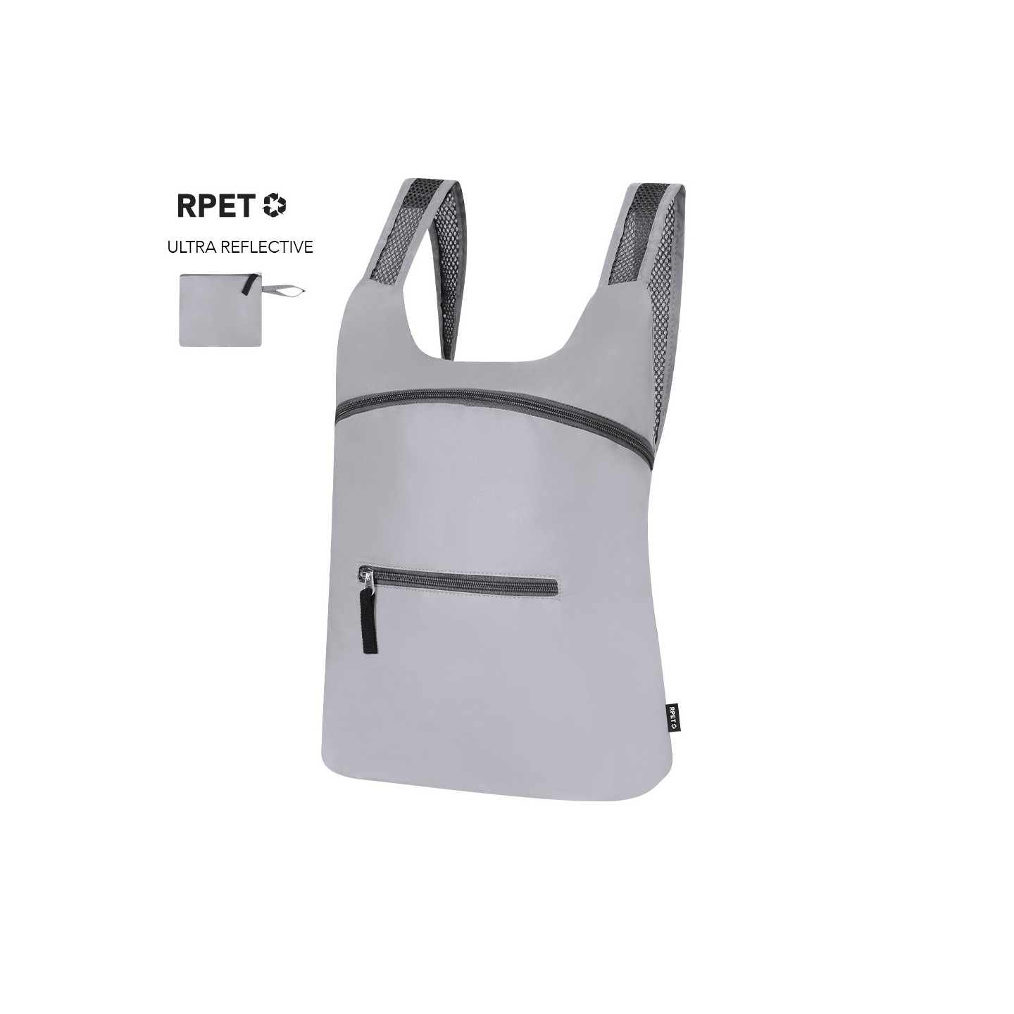 La Mochila Plegable CLADOX, fabricada en RPET, es ecológica y segura, con propiedades reflectantes para visibilidad nocturna. Personalizable y práctica.