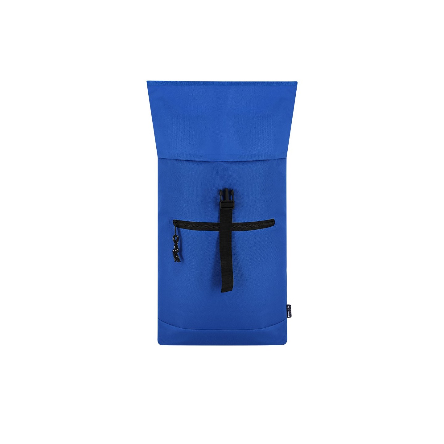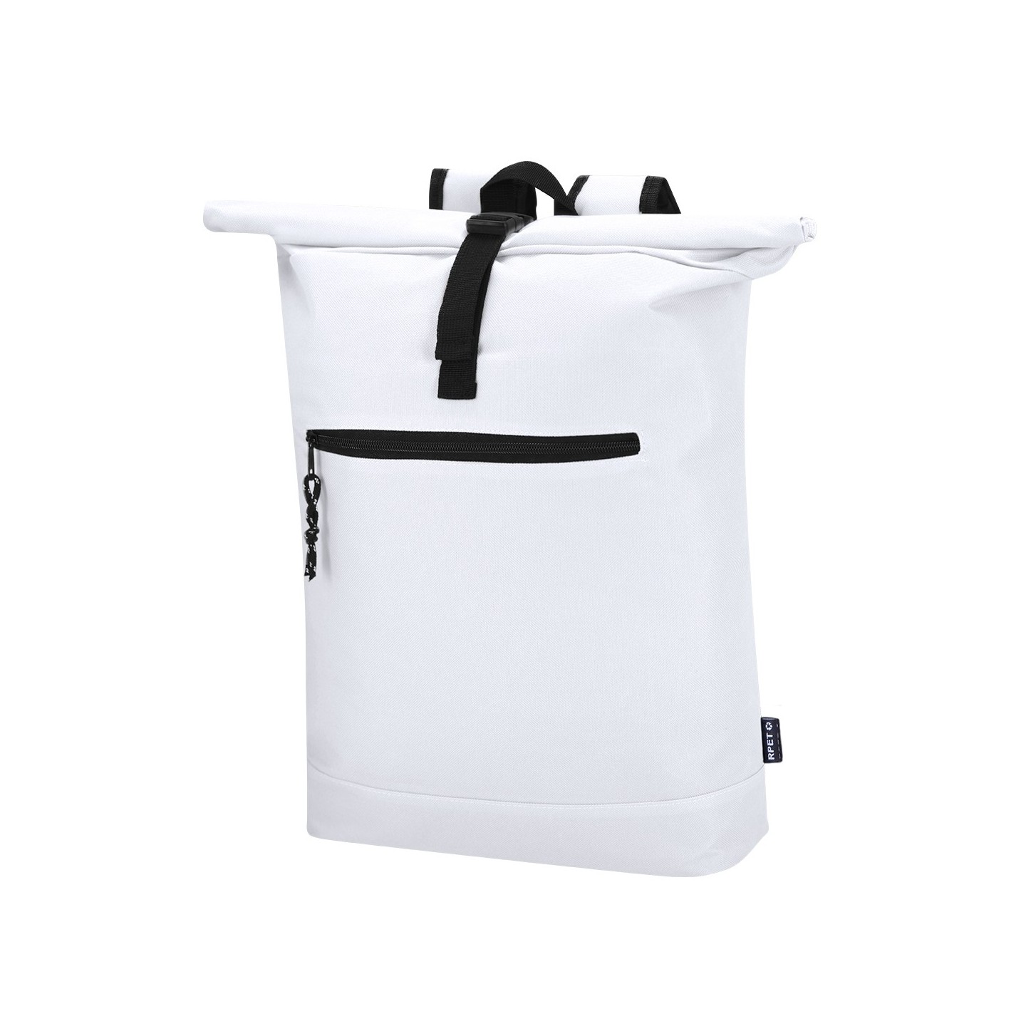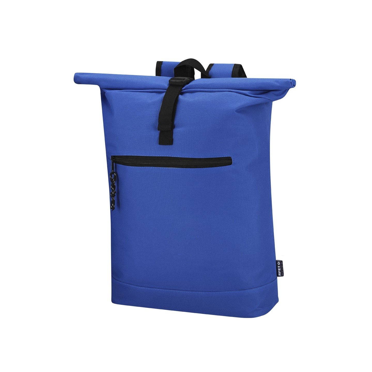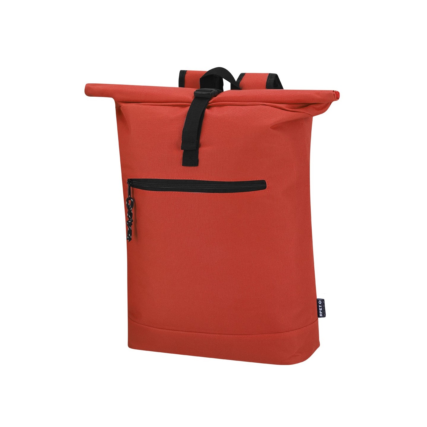 Mochila Roll-Top de poliéster RPET 600D con compartimento para portátil de 15", acolchonada y personalizable. Ideal para empresas comprometidas con la sostenibilidad.