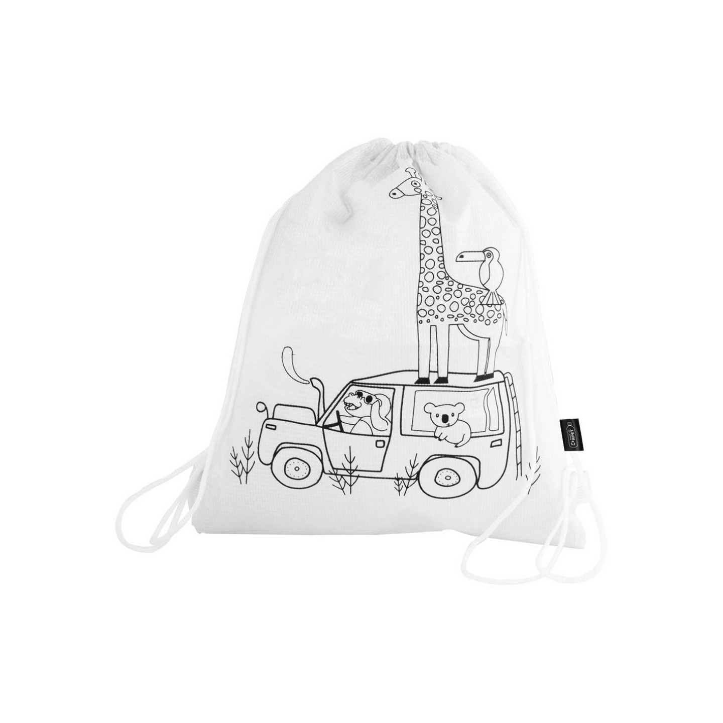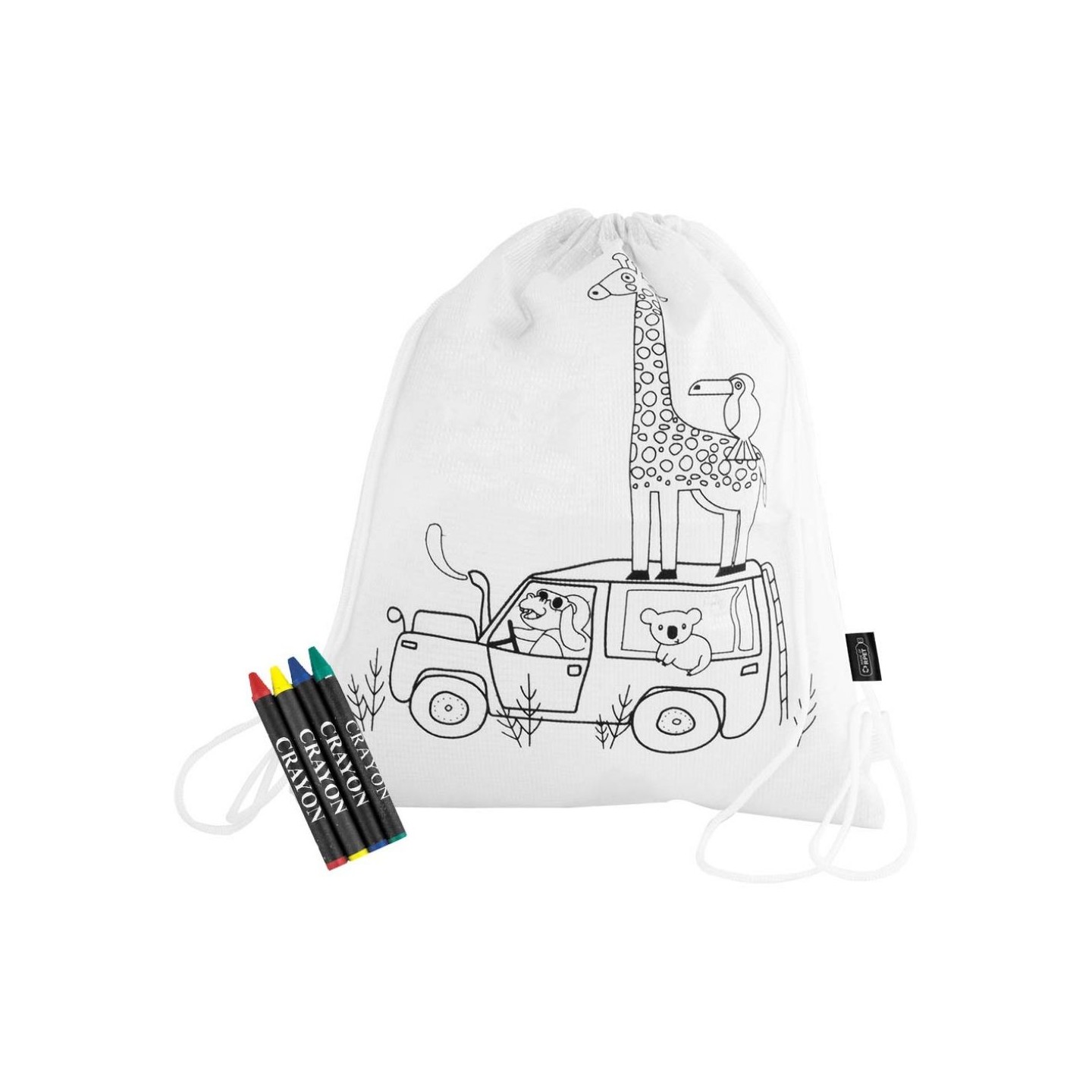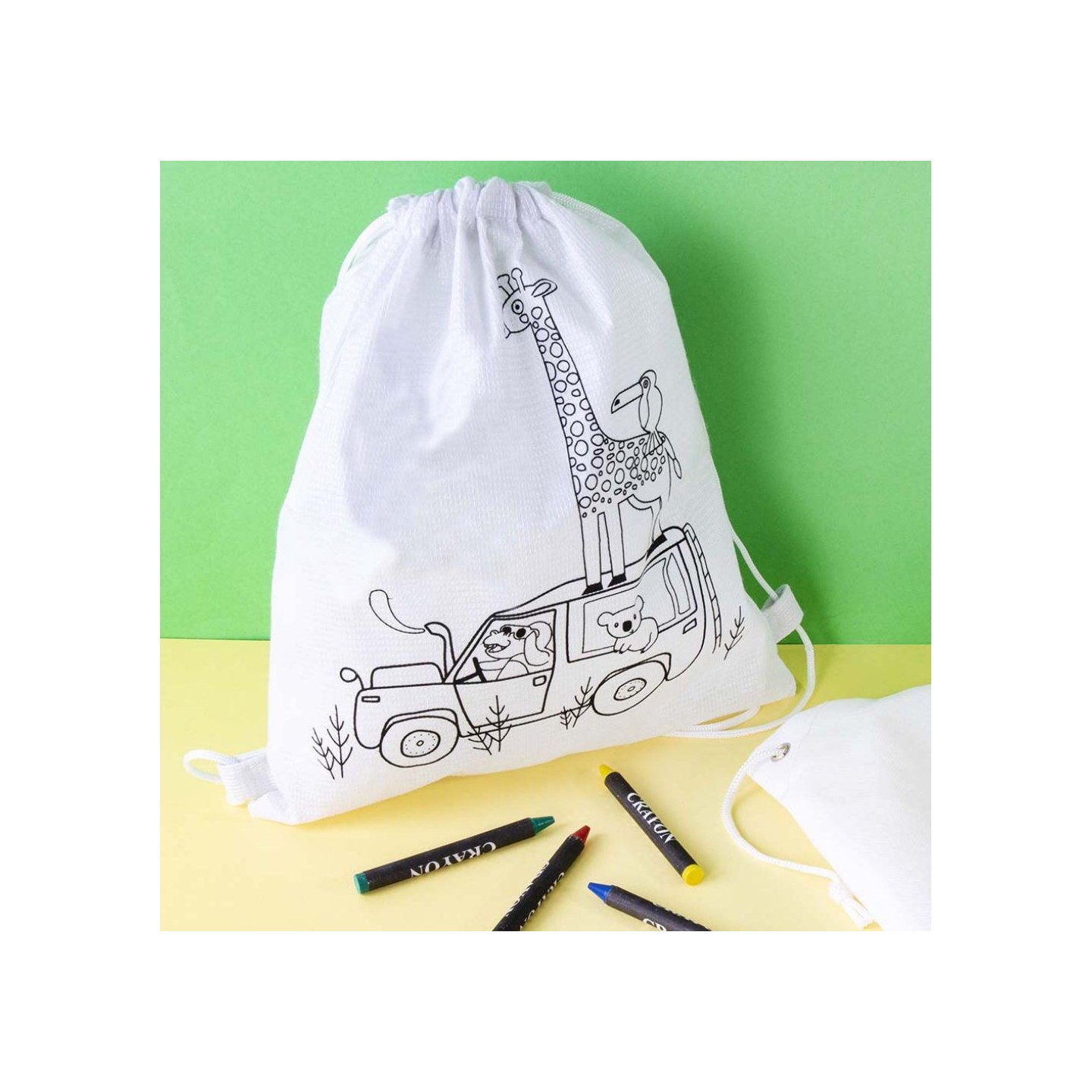 La Mochila Rpet con Pinturas Safun tiene diseño de animales, incluye set de pinturas. Certificaciones GRS, EN 71 y CE.