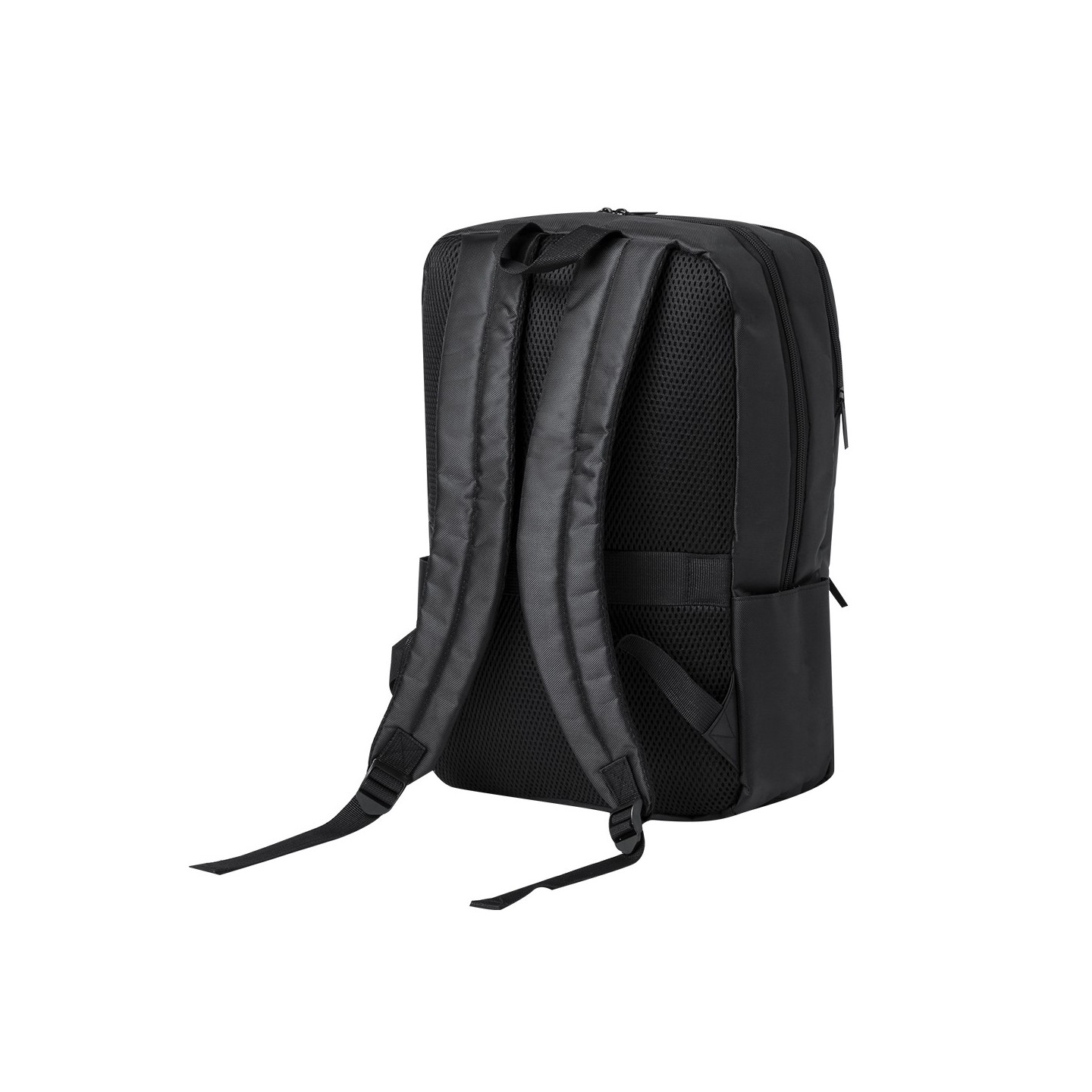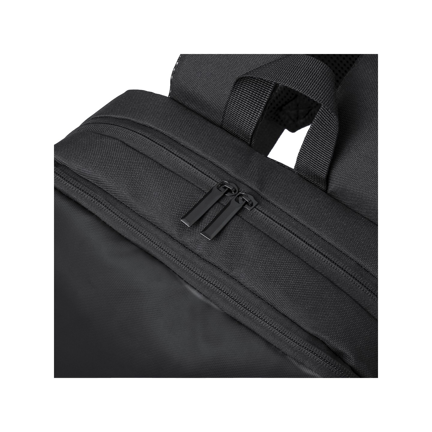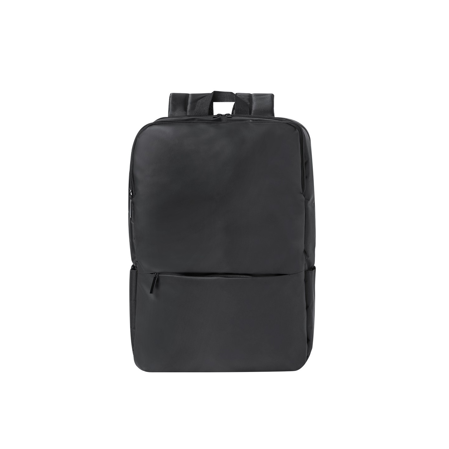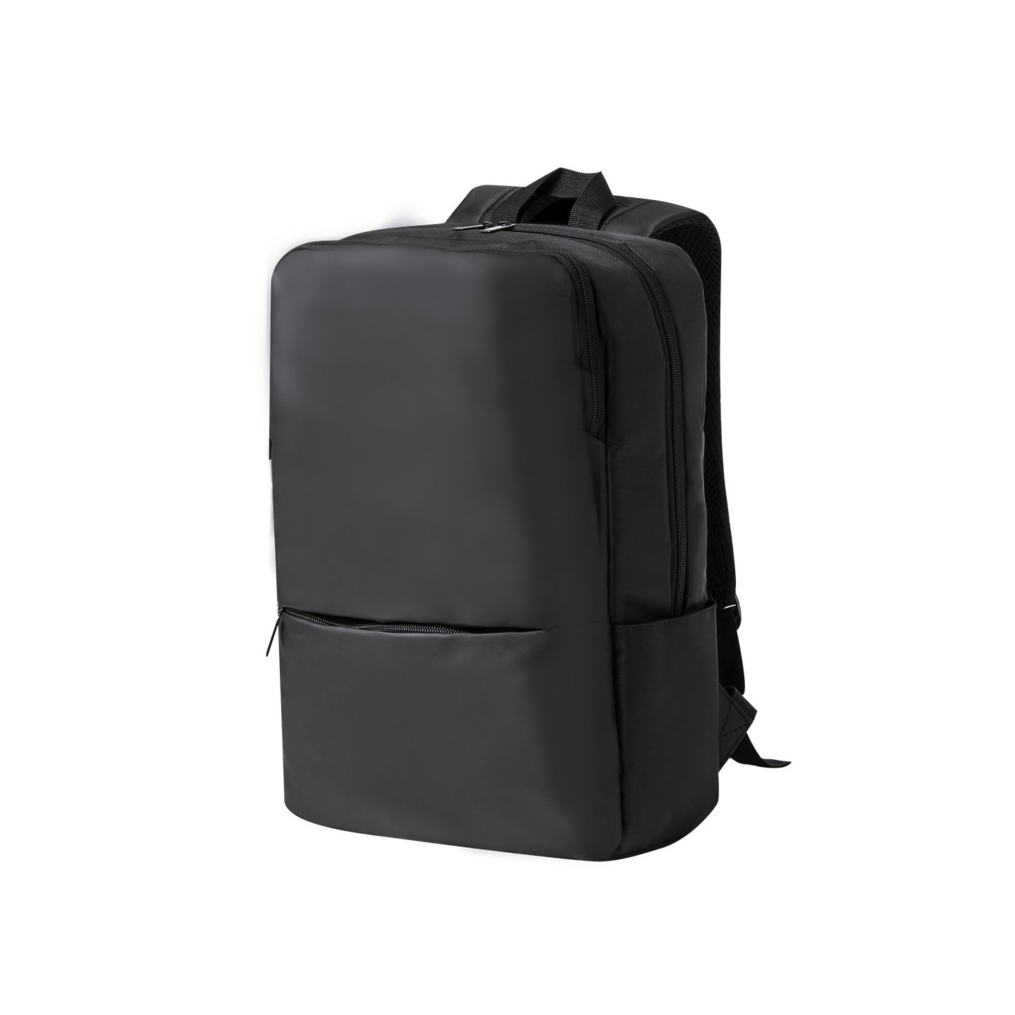Mochila confeccionada en elegante polipiel. De diseño urbano, que incorpora un bolsillo principal acolchado con doble cierre para tablet de hasta 10 pulgadas y portátil de hasta 15 pulgadas, así como un bolsillo segundario y un bolsillo frontal con cremallera. Las cintas de hombros y la espalda son acolchadas, ajustables y cuentan con una tela transpirable para disipar el calor. Además, incluye un accesorio para ajustarse al trolley y una práctica asa en la parte superior. Presentada en una bolsa individual reciclada.