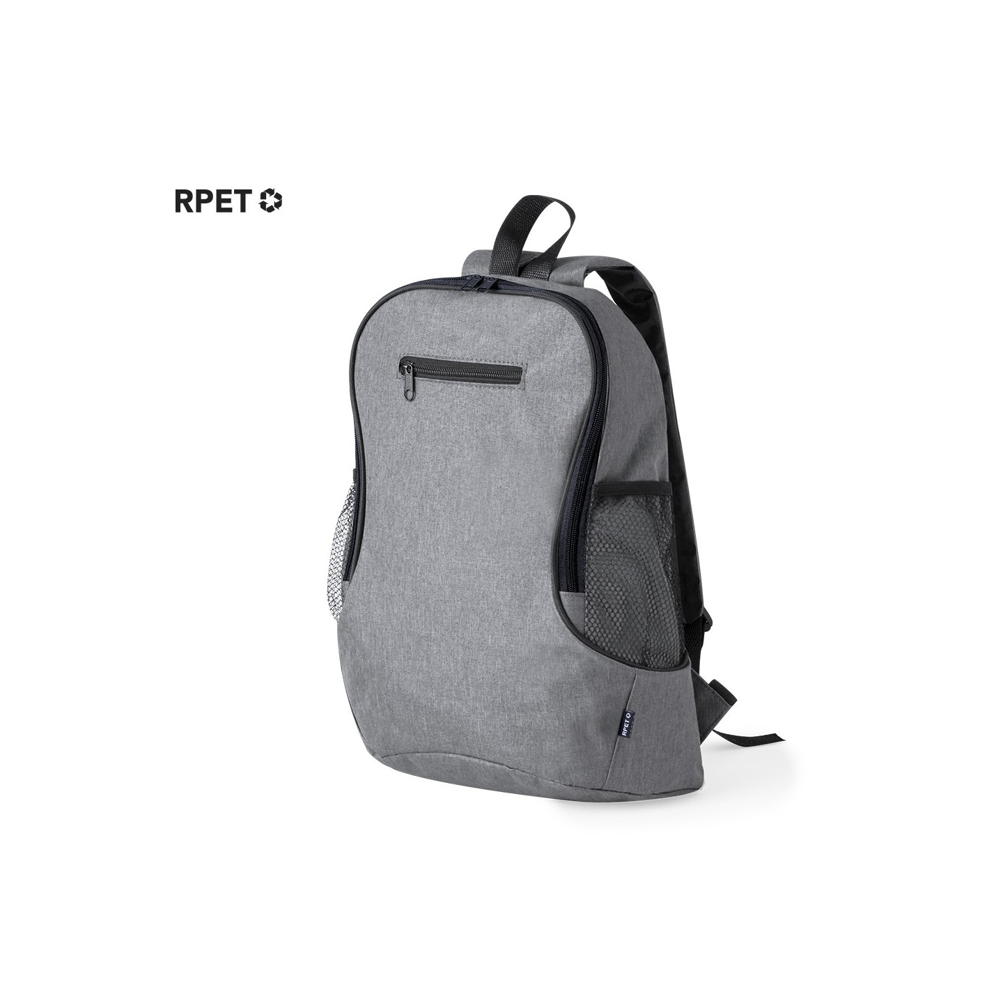 Con el logotipo RPET en la etiqueta exterior, esta mochila no solo lleva tu marca, sino también un mensaje de compromiso con la sostenibilidad y el cuidado del medio ambiente.
