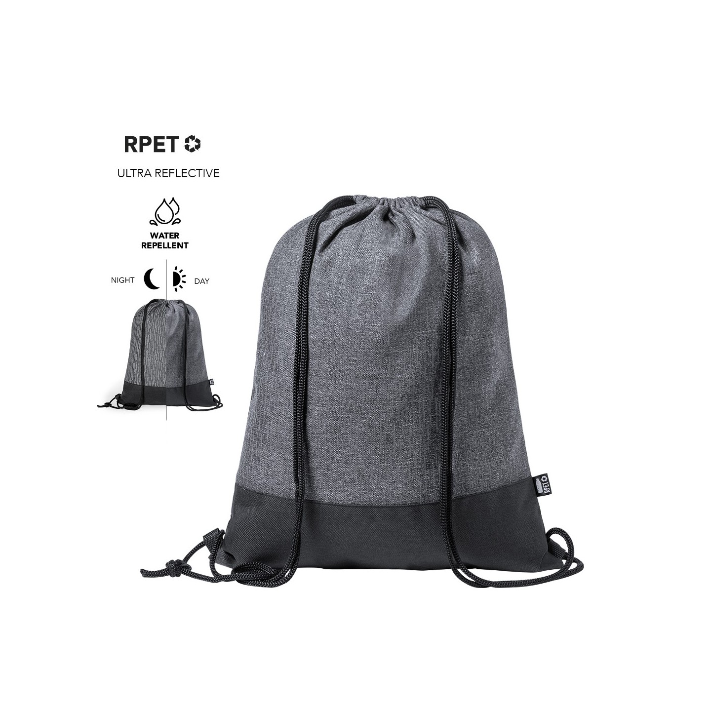 Mochila Stabby, confeccionada en poliéster 600D RPET reciclado y con cuerdas reflectantes autocierre. Elegante combinación de colores y etiqueta distintiva RPET. Propiedad de visibilidad nocturna para mayor seguridad.