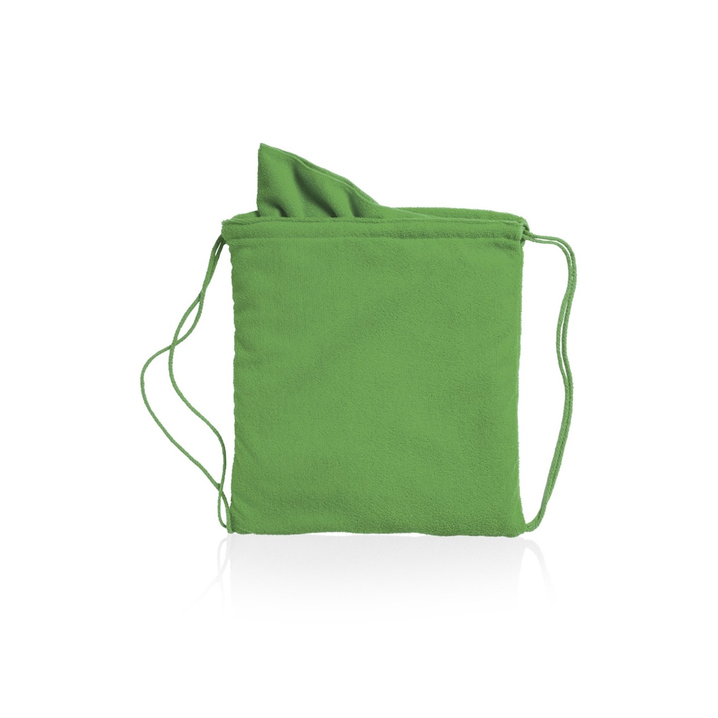 Mochila toalla de microfibra de 150x70cm, absorbente y suave en variados colores. Se convierte en mochila de cuerdas para fácil transporte.