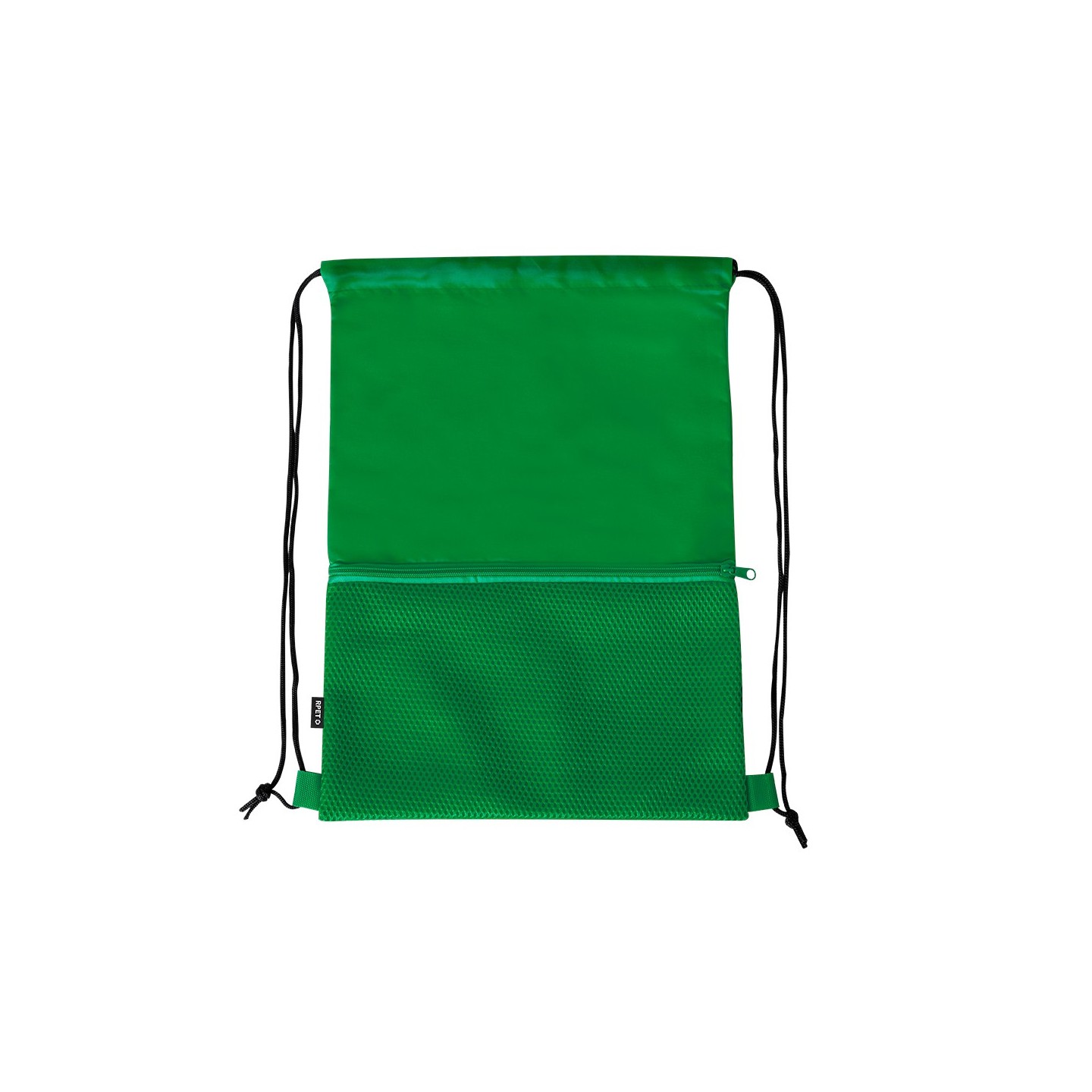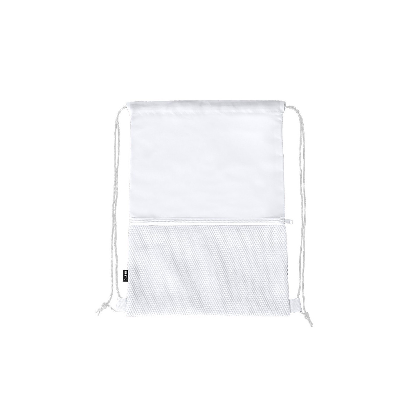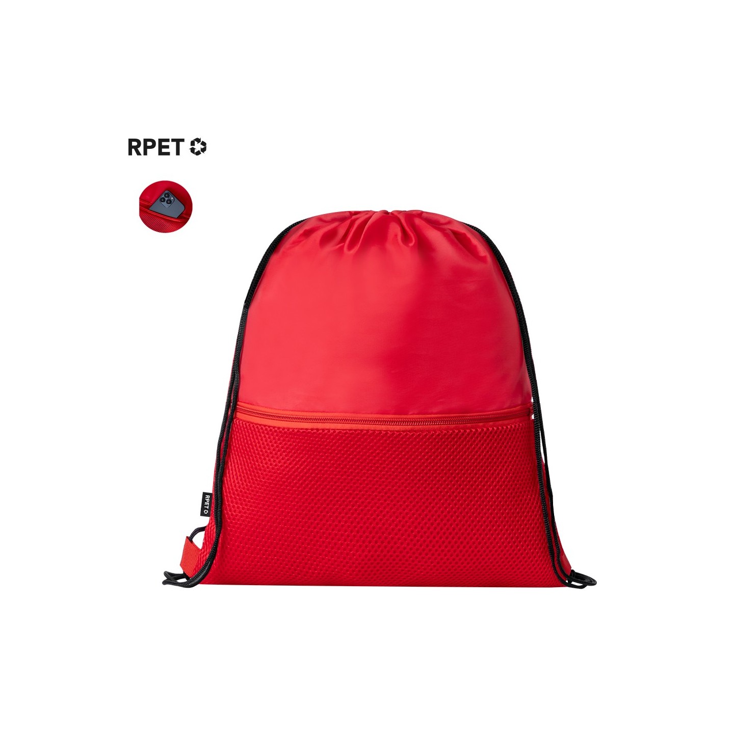 Destacando su funcionalidad, esta mochila cuenta con un bolsillo frontal de rejilla, equipado con un cierre de cremallera a juego, que permite un acceso rápido y conveniente a tus objetos más utilizados. Además, su diseño incluye el logotipo RPET en una etiqueta lateral, reforzando la identidad de tu marca de forma elegante y discreta.