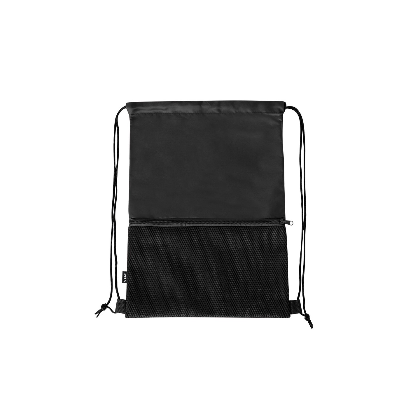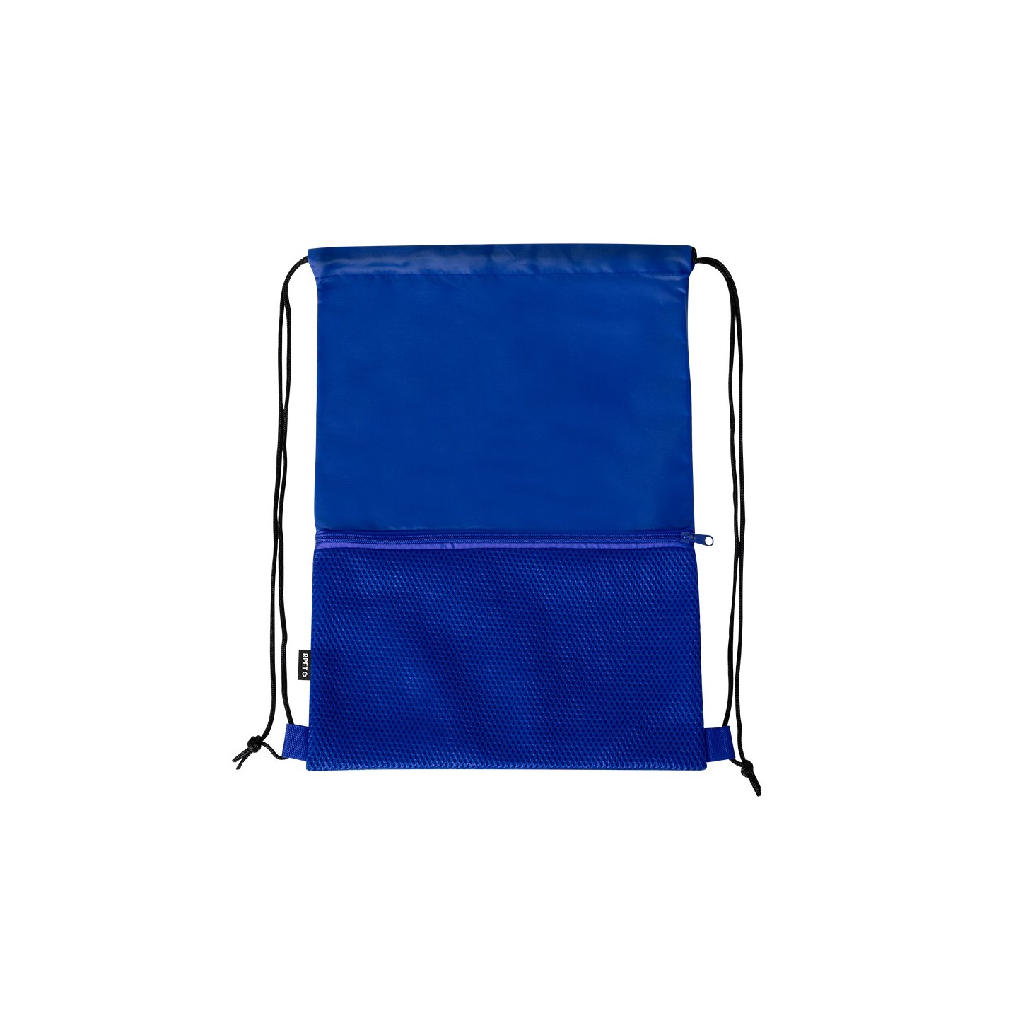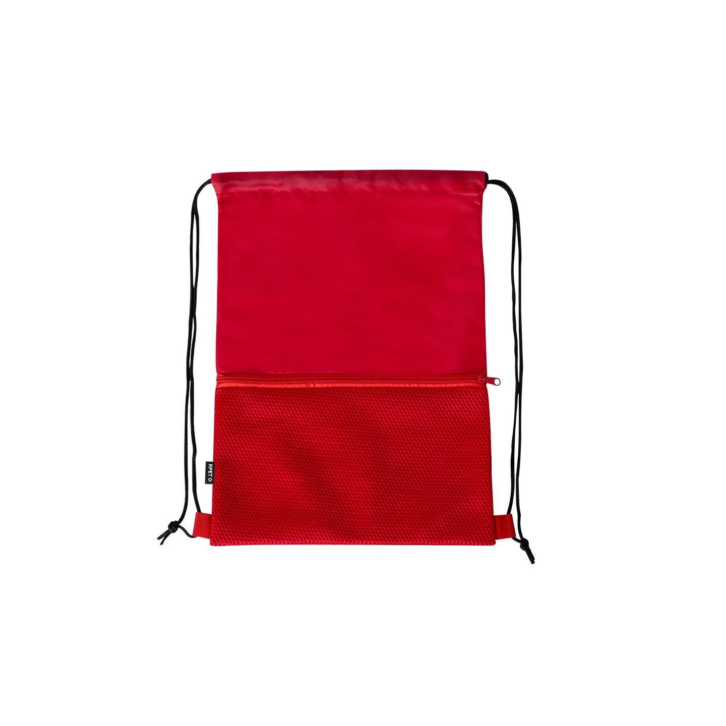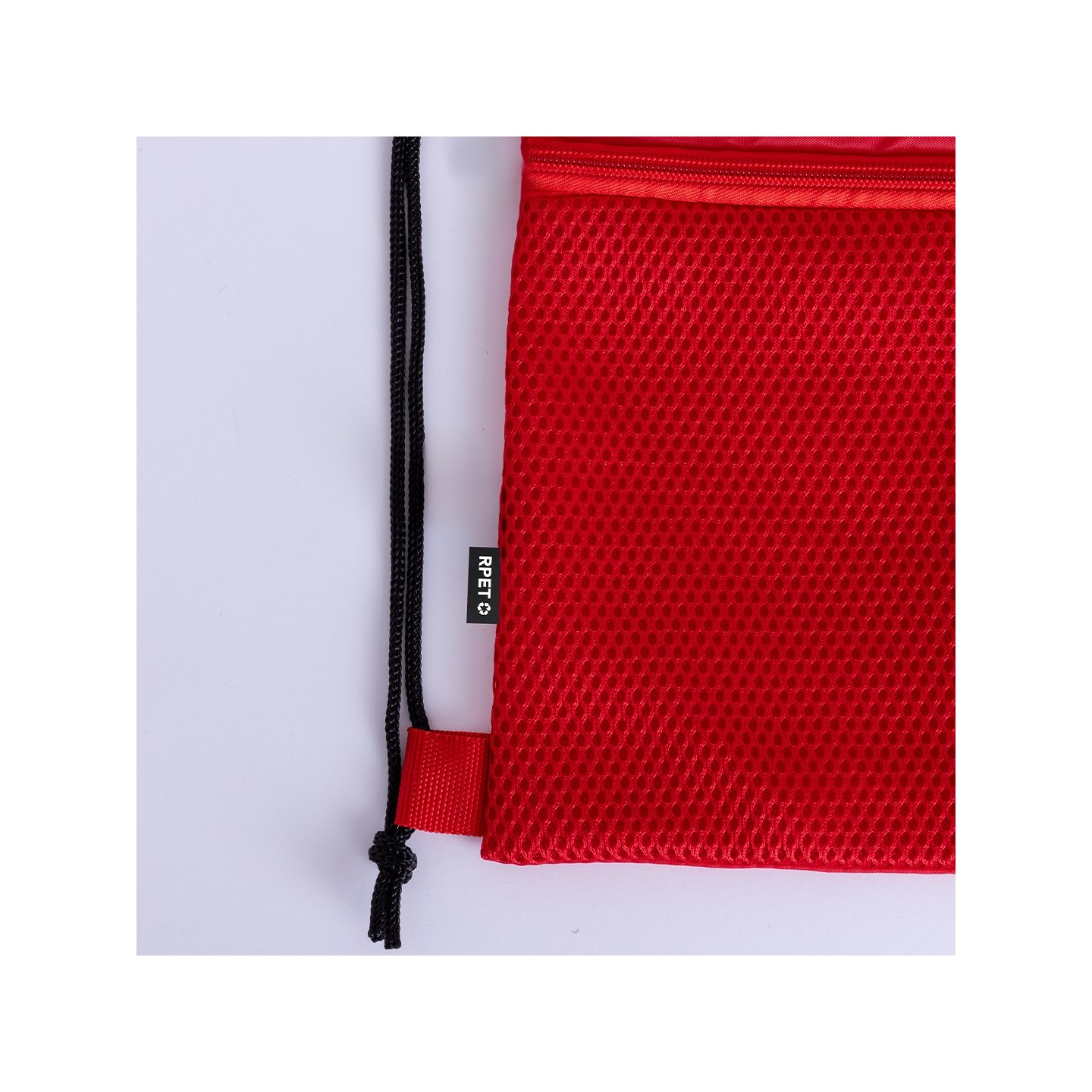 Destacando su funcionalidad, esta mochila cuenta con un bolsillo frontal de rejilla, equipado con un cierre de cremallera a juego, que permite un acceso rápido y conveniente a tus objetos más utilizados. Además, su diseño incluye el logotipo RPET en una etiqueta lateral, reforzando la identidad de tu marca de forma elegante y discreta.
