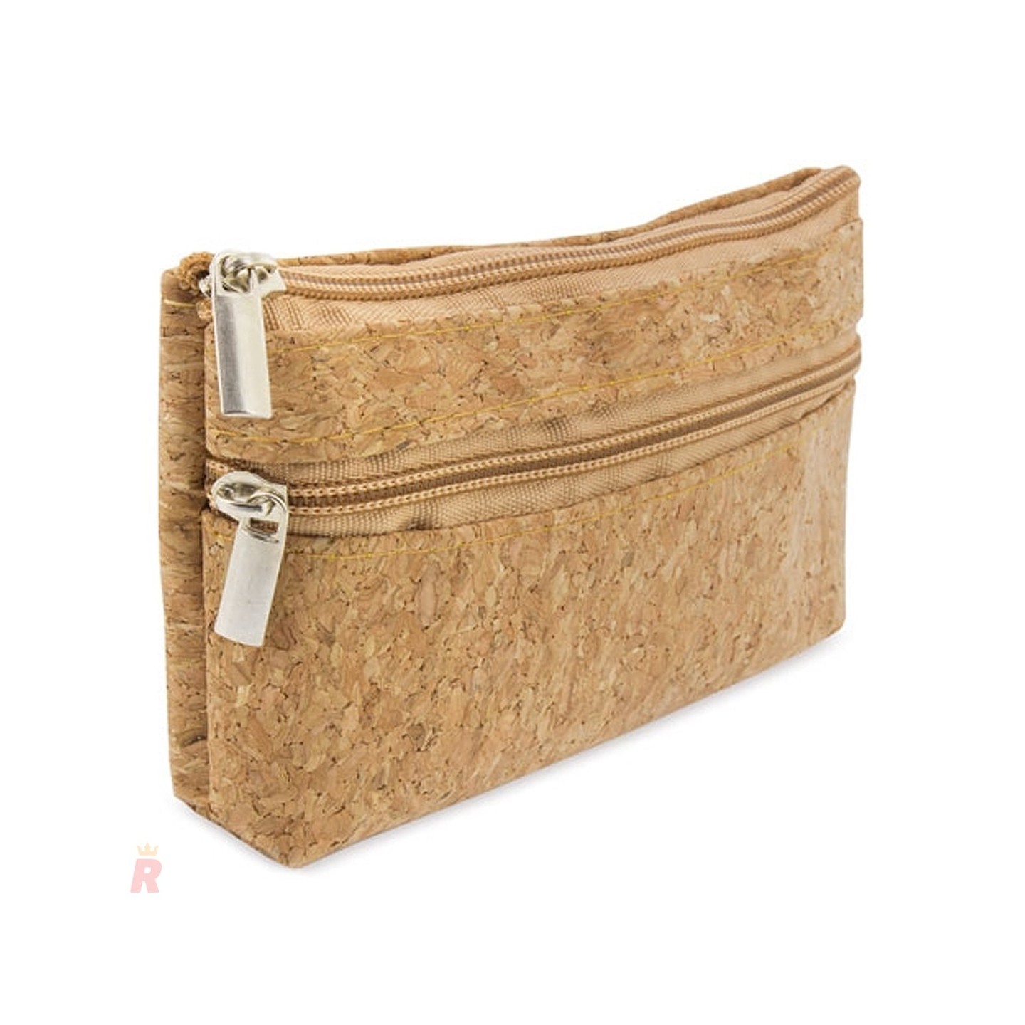 Monedero eco-friendly de corcho natural con doble bolsillo y cierre de cremallera. Perfecto para personalizar con tu logotipo y regalar de forma responsable
