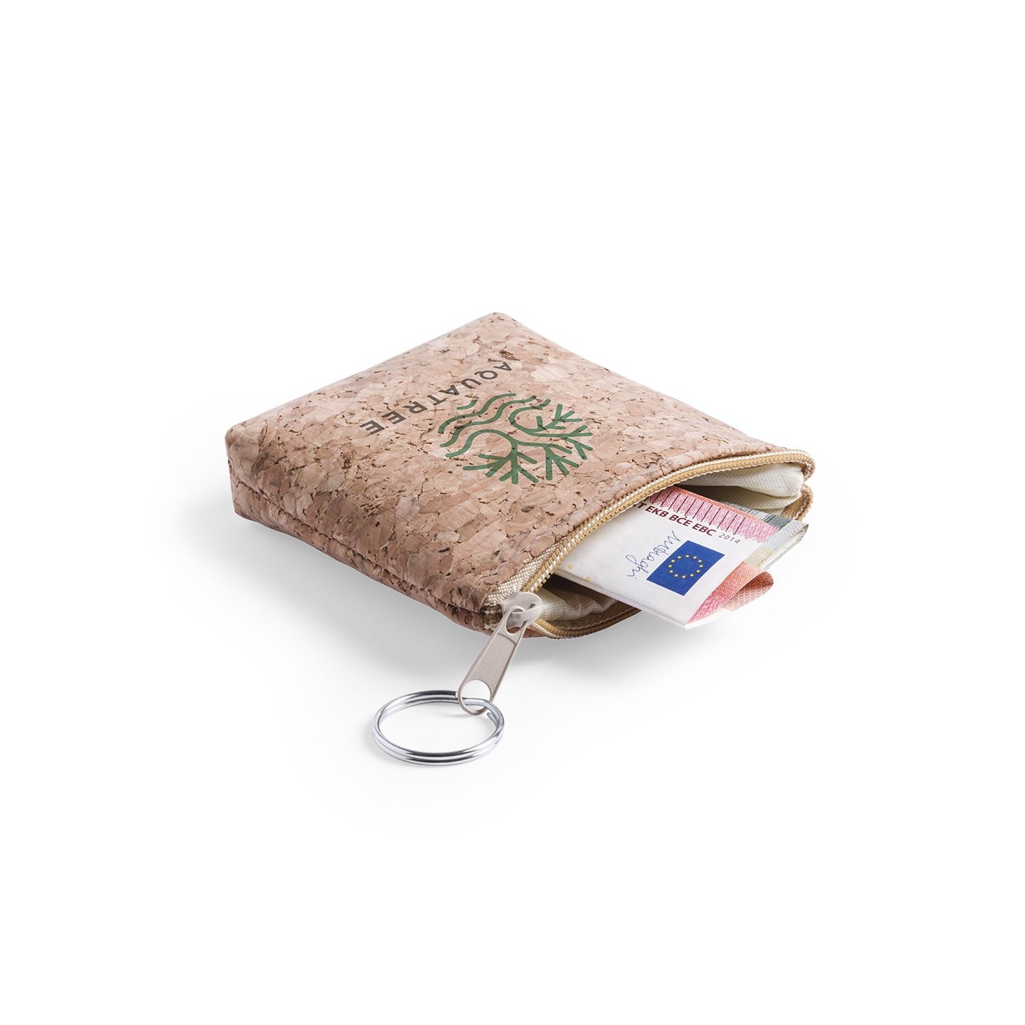 El Monedero Dabey es práctico y ecológico, con un diseño cuadrado en corcho natural. La cremallera y la anilla llavero lo hacen muy conveniente.