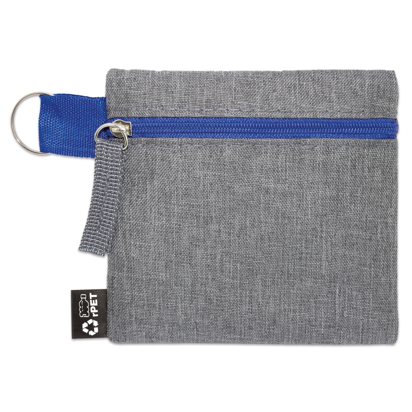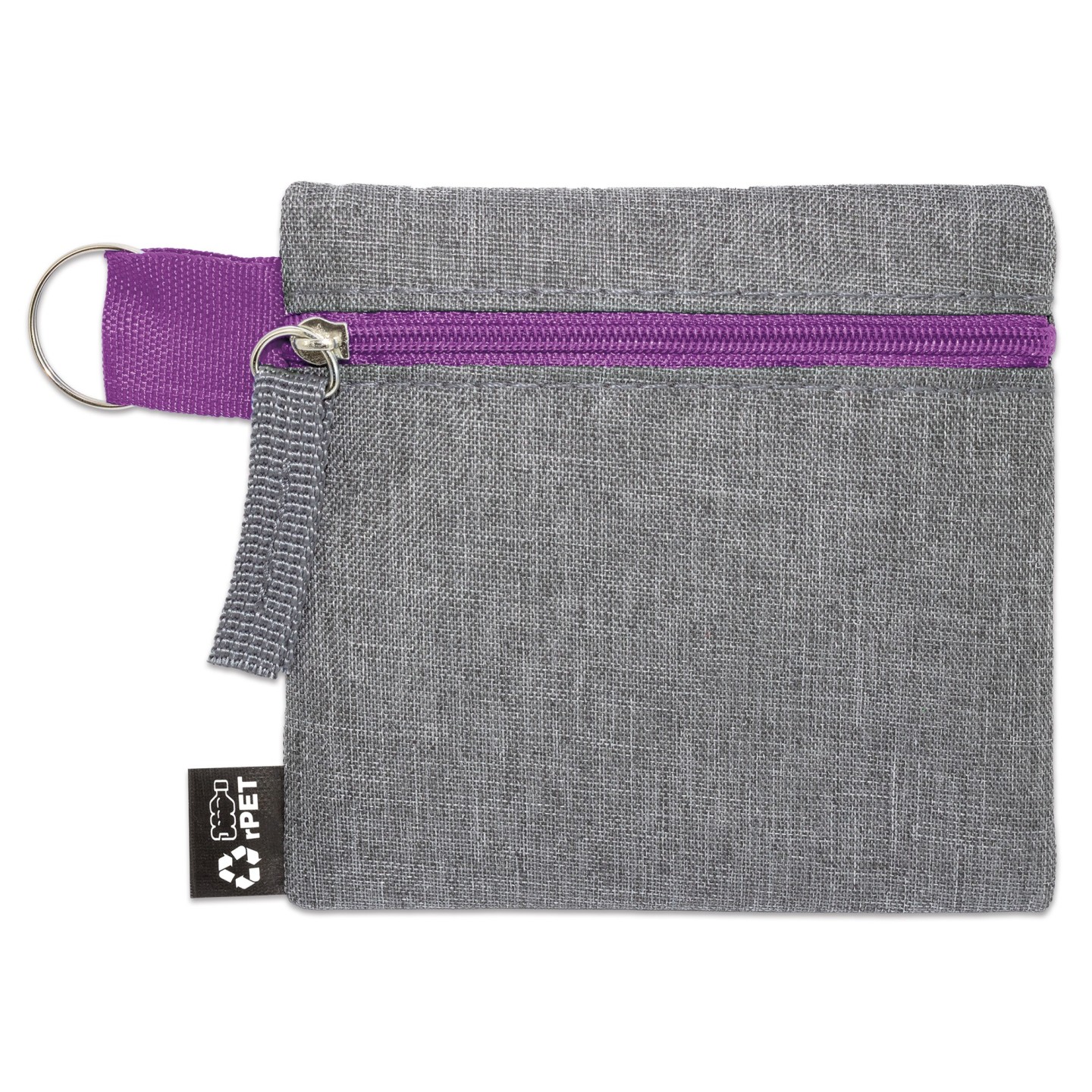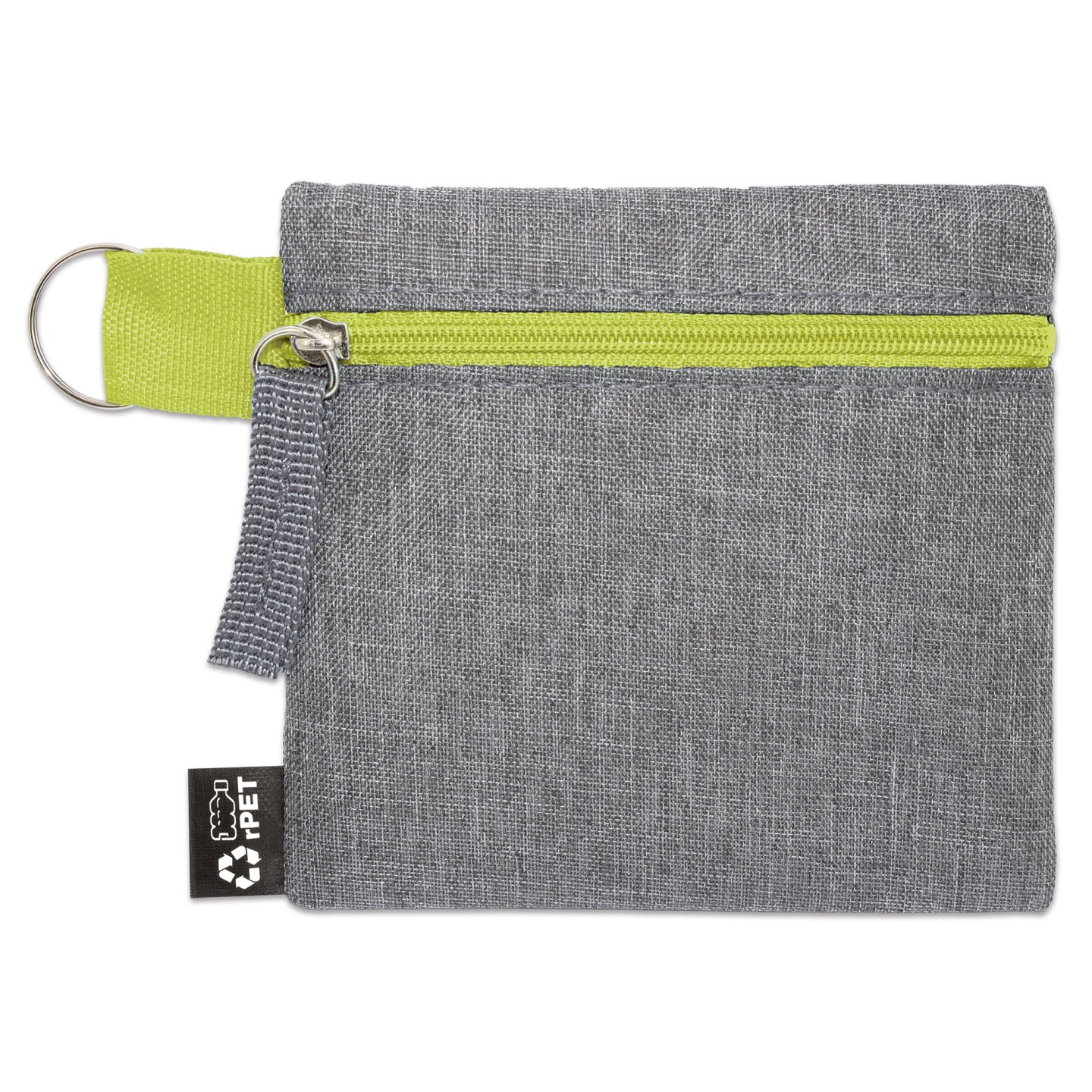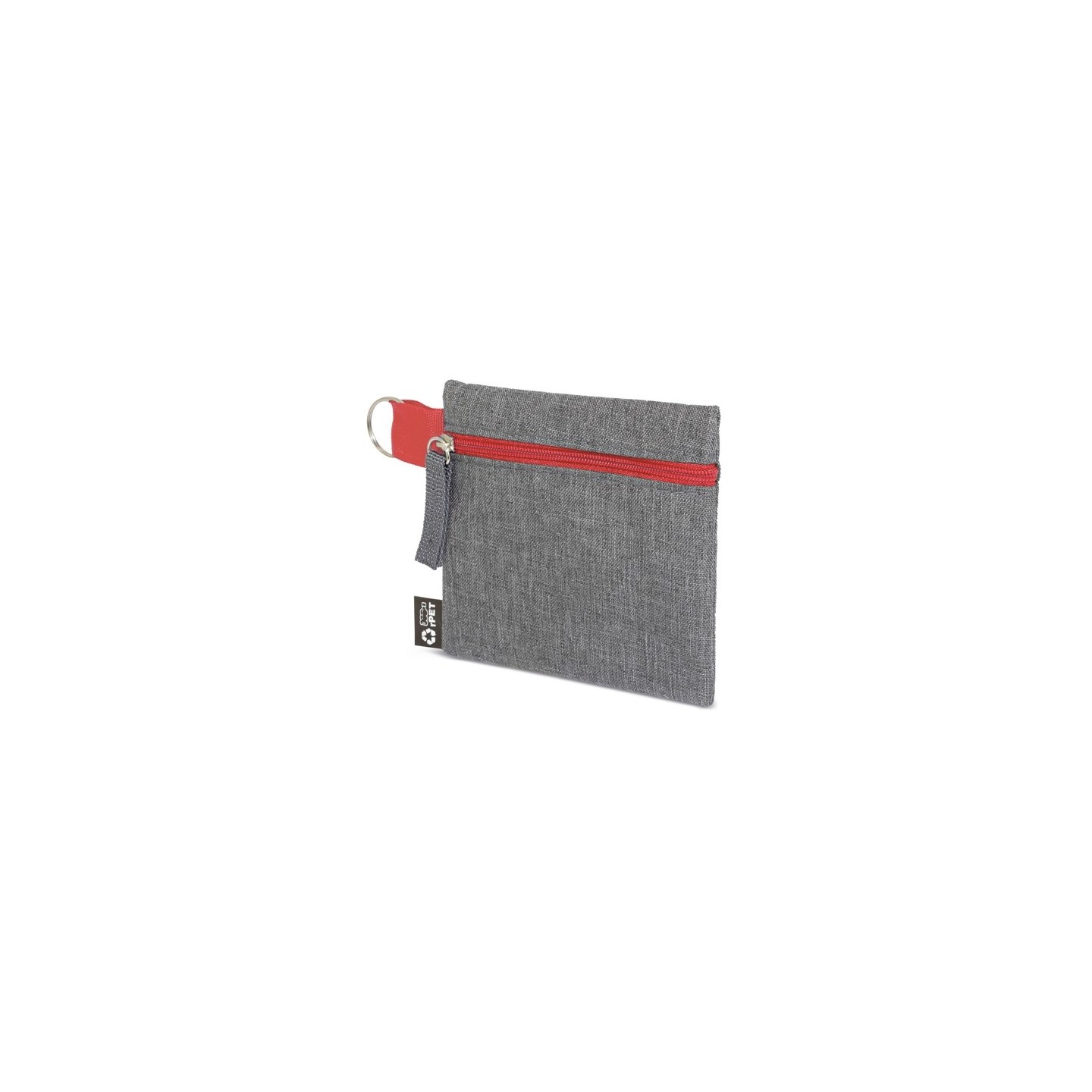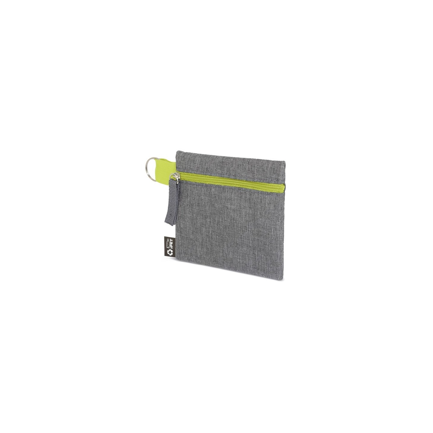 Monedero RPET ARESY fabricado con materiales reciclados. Diseño jaspeado, cierre de cremallera con tirador abre fácil y anilla para llavero. Práctico, ecológico.