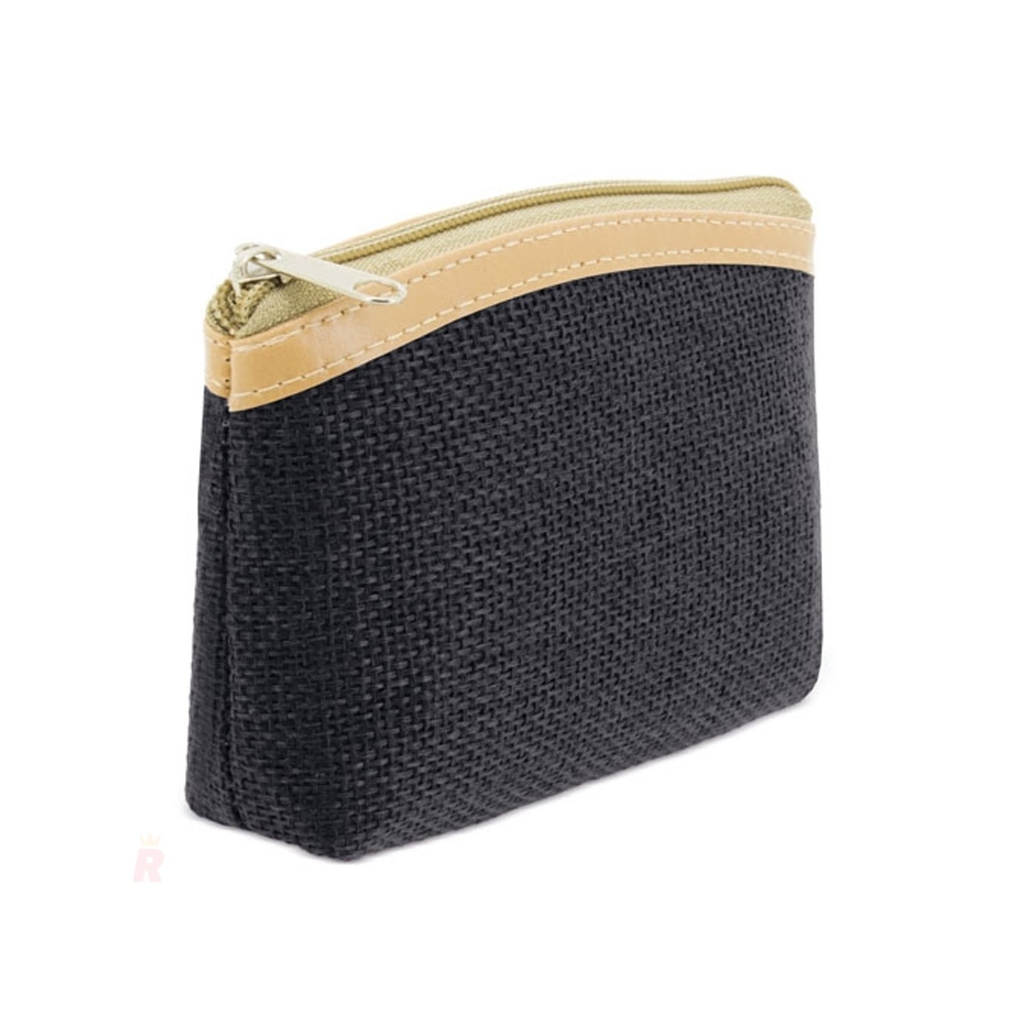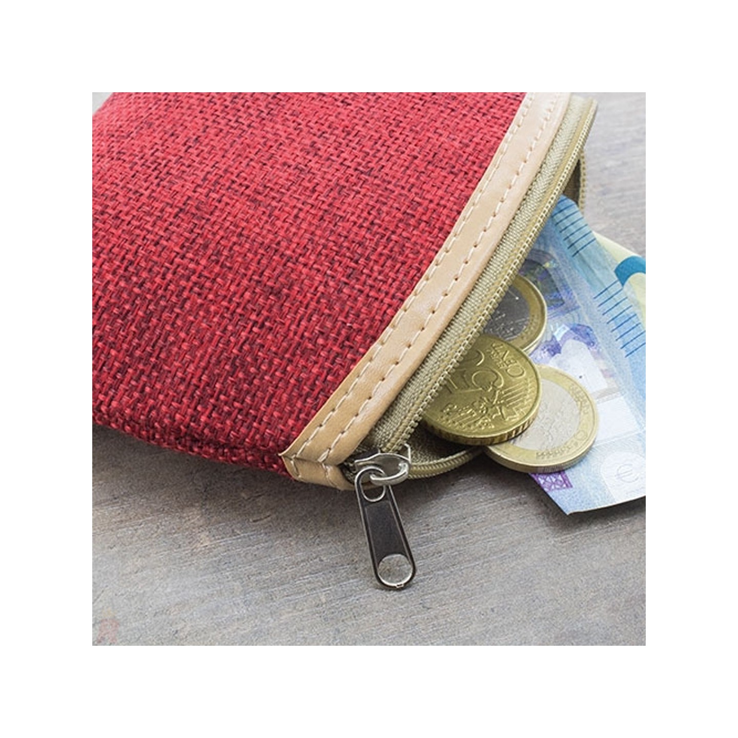Monedero SANTA EULALIA, con acabado rústico y práctico. Ideal para monedas y billetes, con cremallera y aplique de polipiel. Personalizable para campañas.