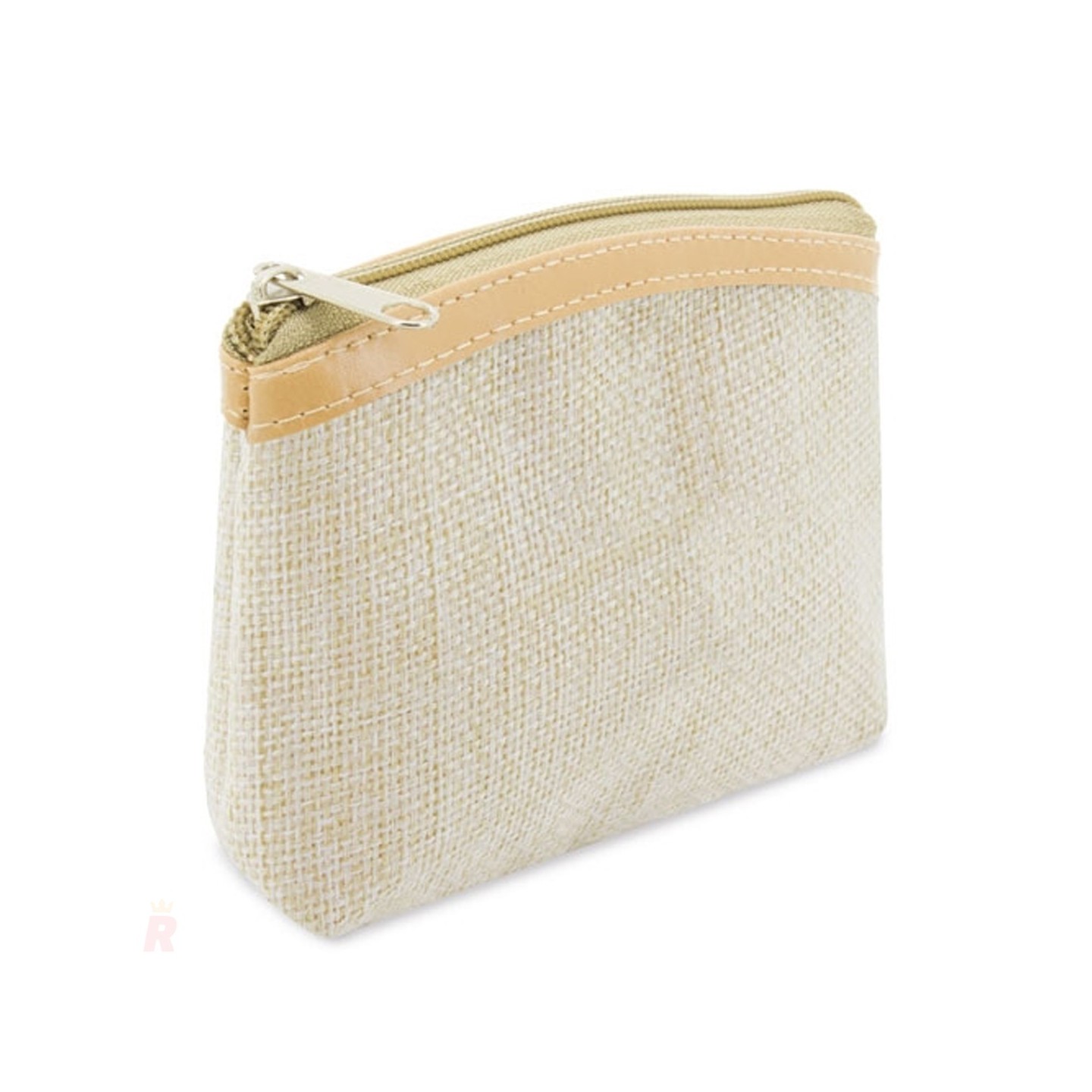 Monedero SANTA EULALIA, fabricado en un tejido similar al yute, es un accesorio práctico y elegante, ideal para quienes buscan funcionalidad con un toque natural. Su acabado rústico y atractivo hace que sea una excelente opción para quienes aprecian los detalles sencillos pero sofisticados.