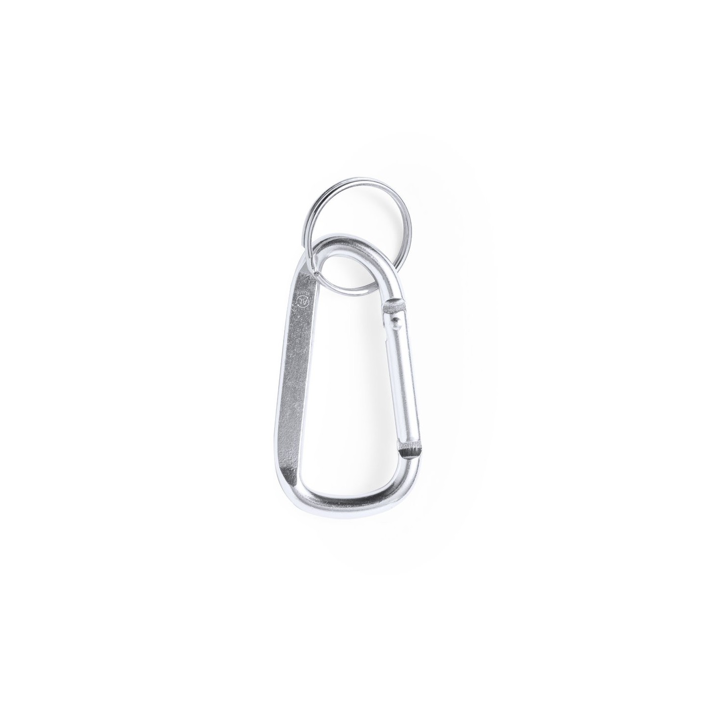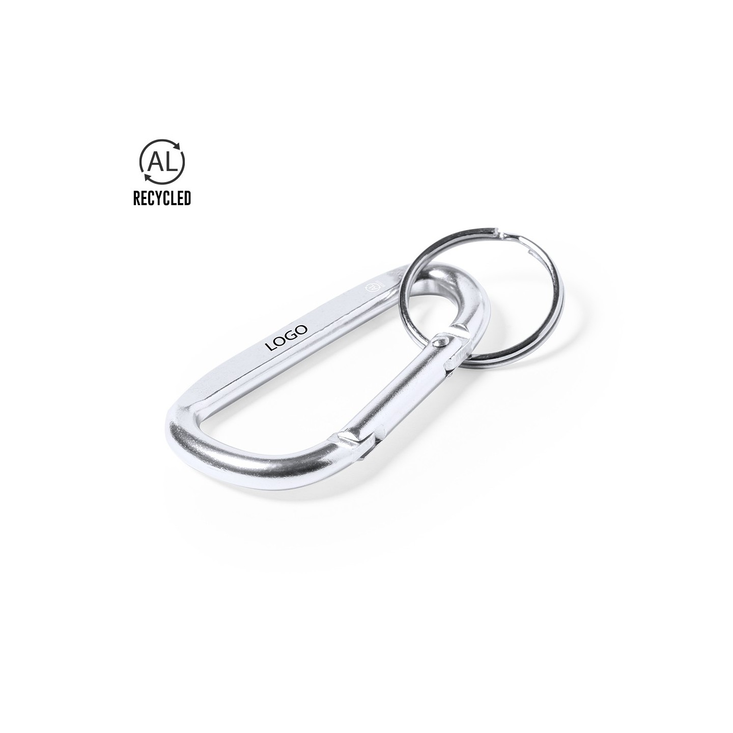 Descubre el Mosquetón Galinex de aluminio reciclado, acabado plateado, anilla llavero a juego. Sostenibilidad y funcionalidad en un accesorio único.