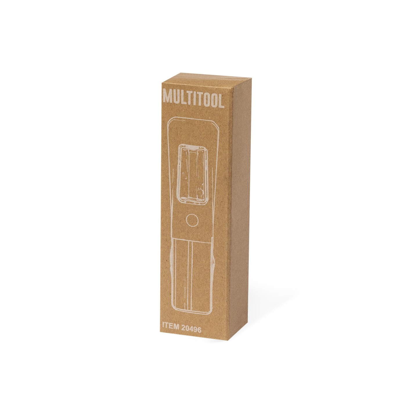 Presentada en una caja de diseño kraft, esta multiherramienta no solo es funcional, sino también estéticamente atractiva, ideal para regalar a clientes o empleados como un gesto de aprecio.