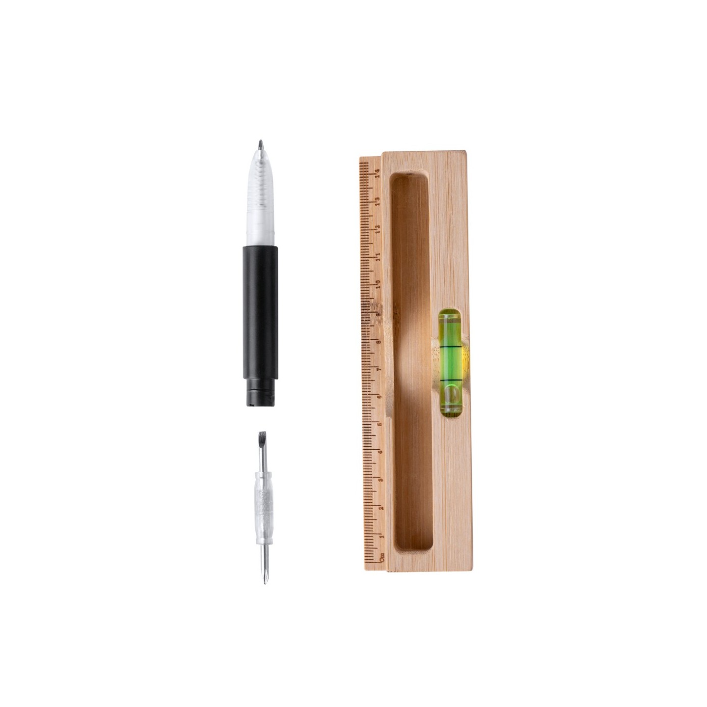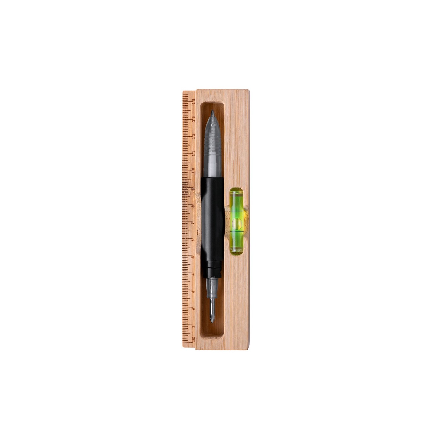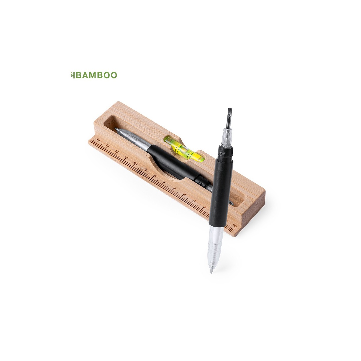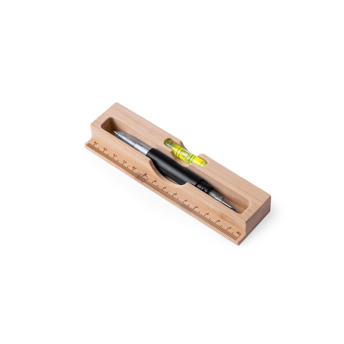La Multiherramienta Margorix trae 5 funciones en acero al carbono. Bolígrafo integrado y estuche de bambú. Ideal para regalos corporativos. Personalizable.