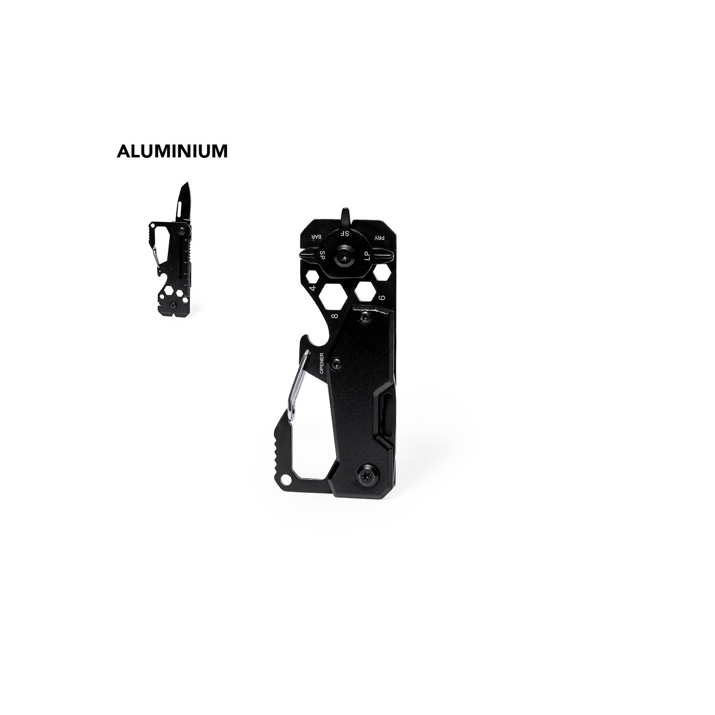 La Multiherramienta Valixia ofrece una impresionante versatilidad, con 13 funciones diferentes integradas en un diseño compacto y práctico. Desde una llave para tuercas hexagonales en varios tamaños hasta un mosquetón, un abrelatas, una regla, una rasqueta, un cuchillo y destornilladores planos y phillips, esta herramienta está diseñada para satisfacer una amplia gama de necesidades.
