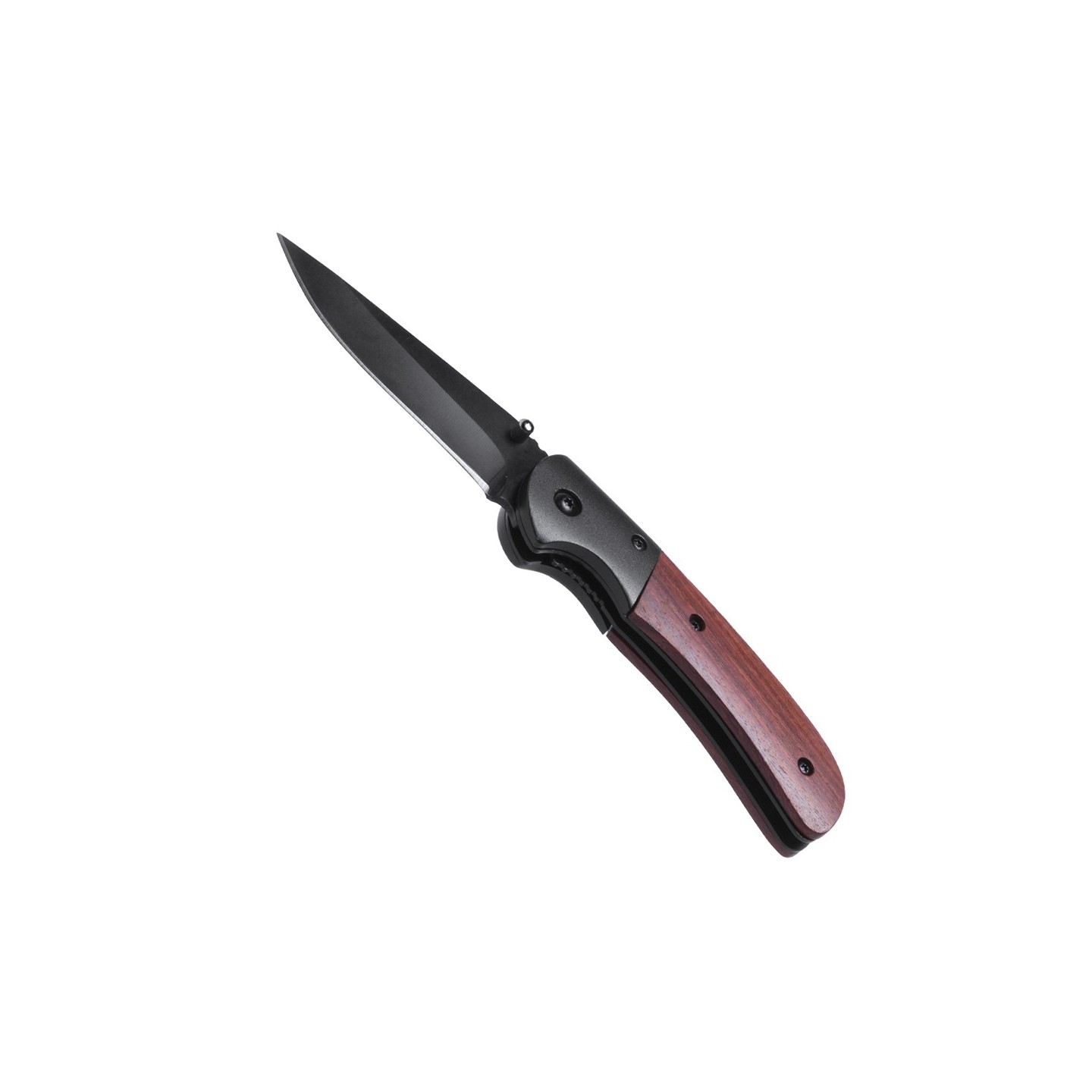 La empuñadura de madera natural añade un toque de calidez y autenticidad a la Navaja Dertam. La elección de este material no solo le confiere un aspecto único y distinguido, sino que también proporciona un agarre cómodo y seguro. La combinación de la hoja negra y la empuñadura de madera natural crea una estética sorprendente y atractiva.