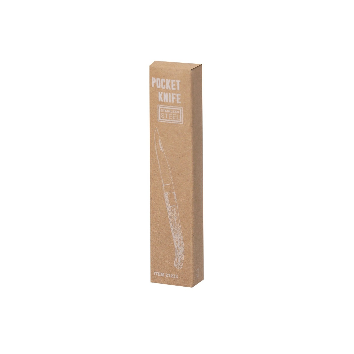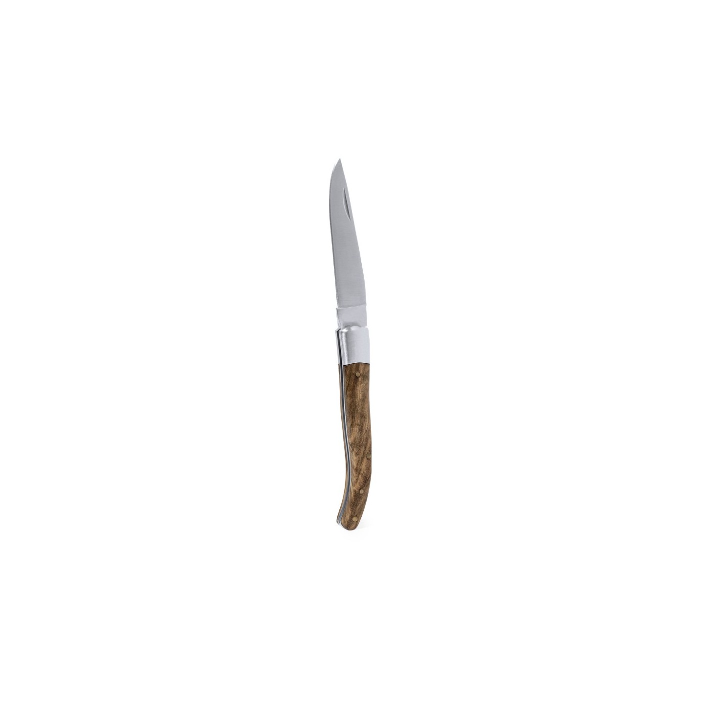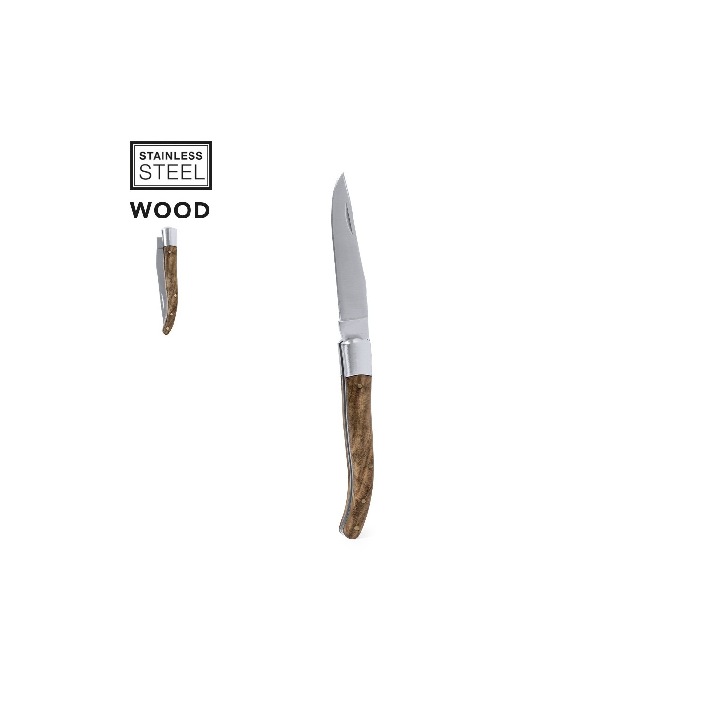 Navaja Rinex está fabricada acero inoxidable resistente, mango ergonómico de madera lacada. Personalizable. Presentada en elegante caja kraft