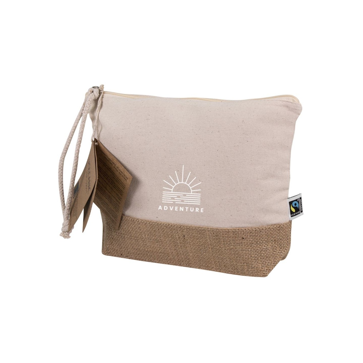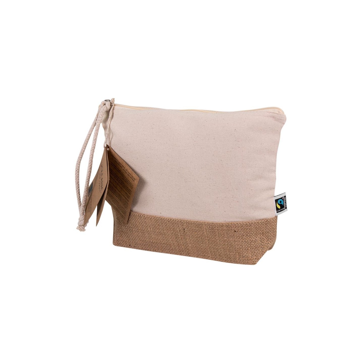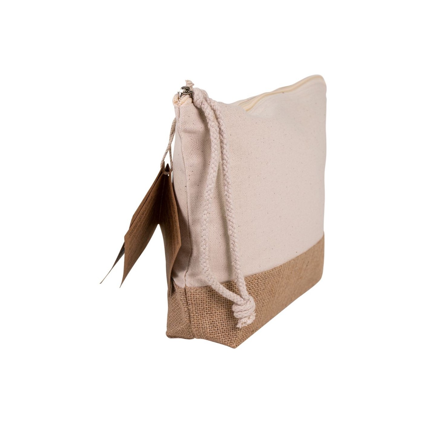 Elegancia y funcionalidad se unen en este exclusivo neceser. Fabricado en 100% algodón Fairtrade con yute y asa larga para un estilo distintivo