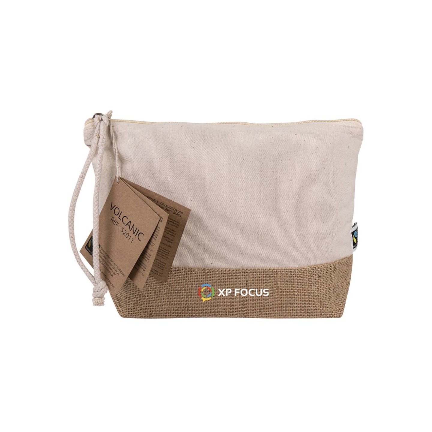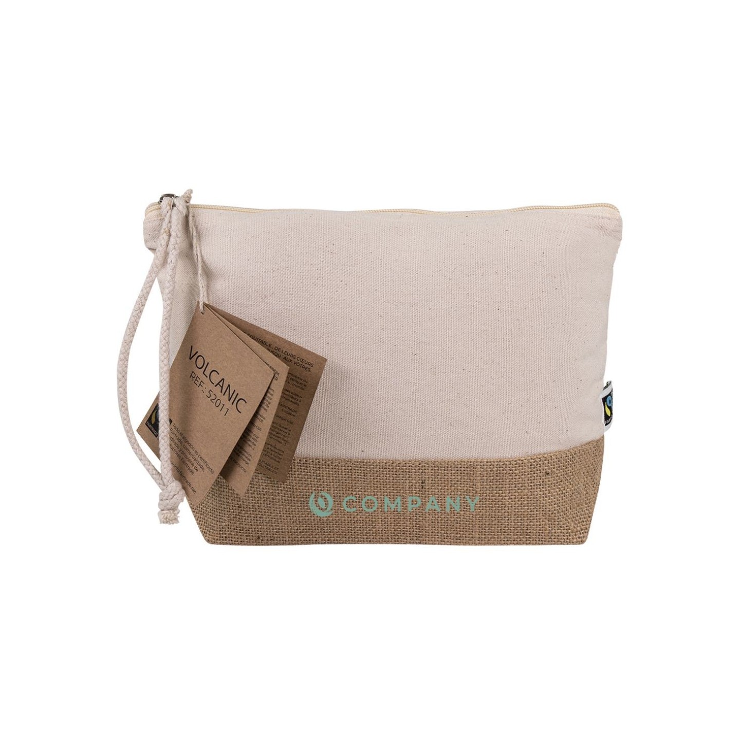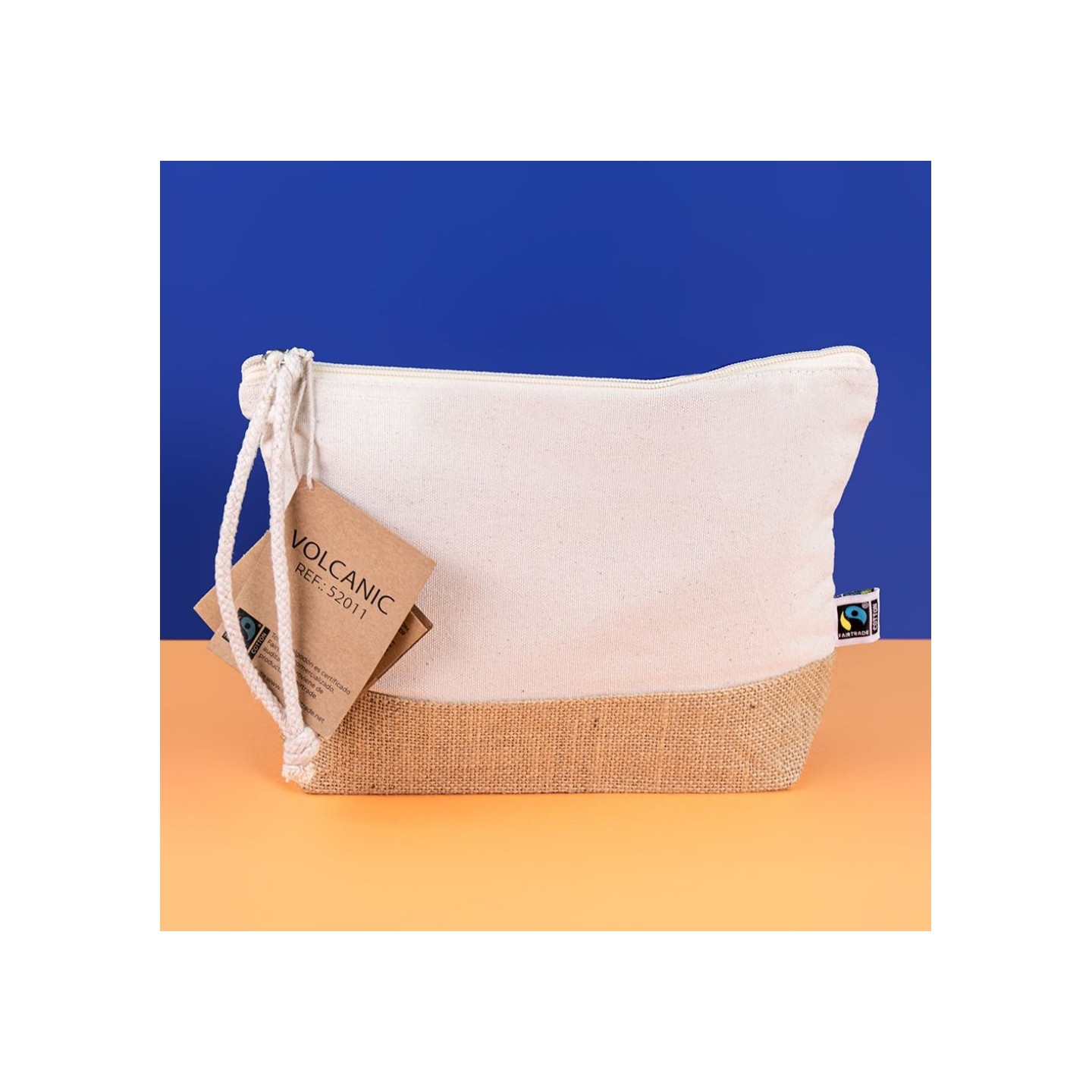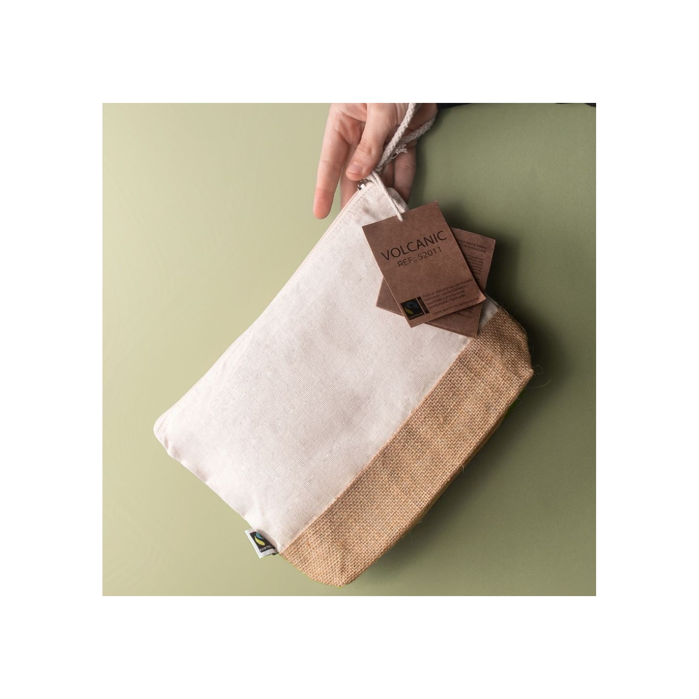 Elegancia y funcionalidad se unen en este exclusivo neceser. Fabricado en 100% algodón Fairtrade con yute y asa larga para un estilo distintivo