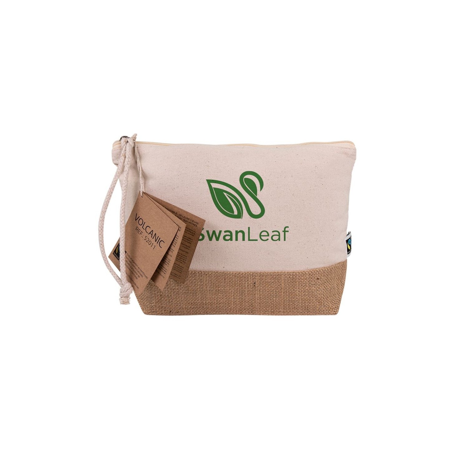 Este neceser exclusivo es una fusión armoniosa de materiales de alta calidad y diseño funcional. La combinación de algodón Fairtrade y yute no solo asegura durabilidad, sino que también refleja nuestro compromiso con la innovación y la originalidad en cada detalle.