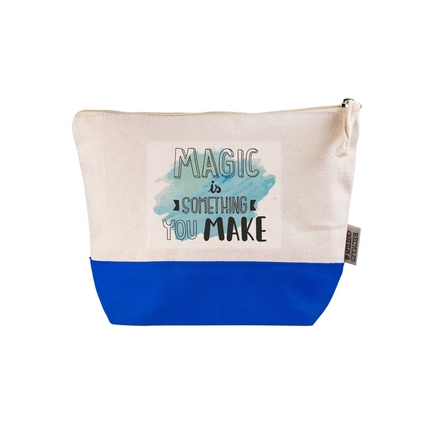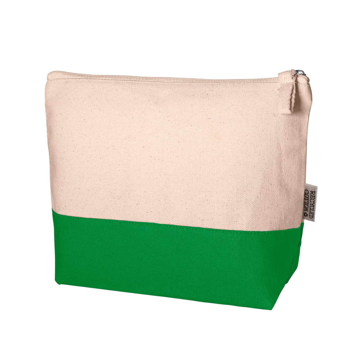 Neceser en algodón reciclado con certificación GRS, diseño bicolor personalizable. Ligero y práctico, ideal como regalo promocional sostenible.