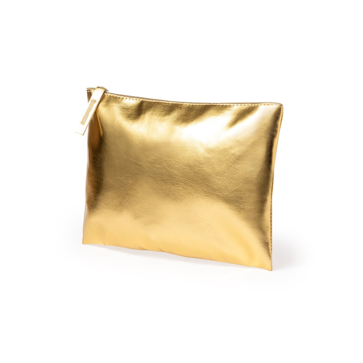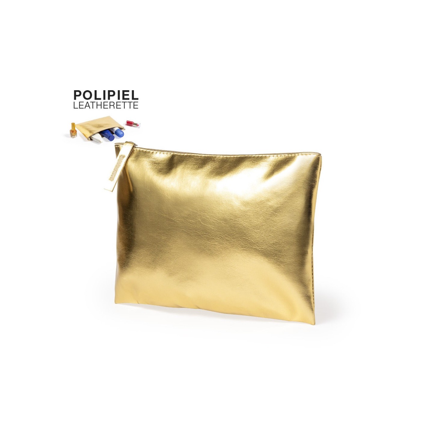 Neceser Darak de polipiel metalizada con cierre de cremallera y tirador a juego. Disponible en dorado, plateado y oro rosa. Ideal para viajes y maquillaje.