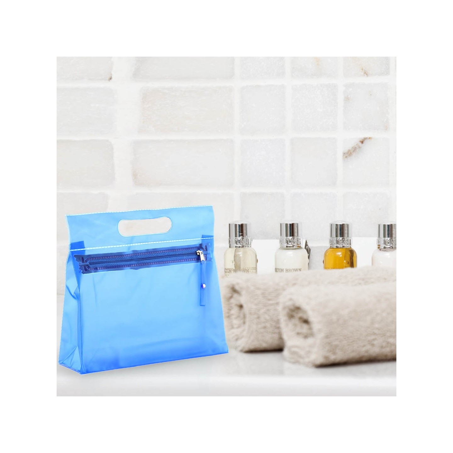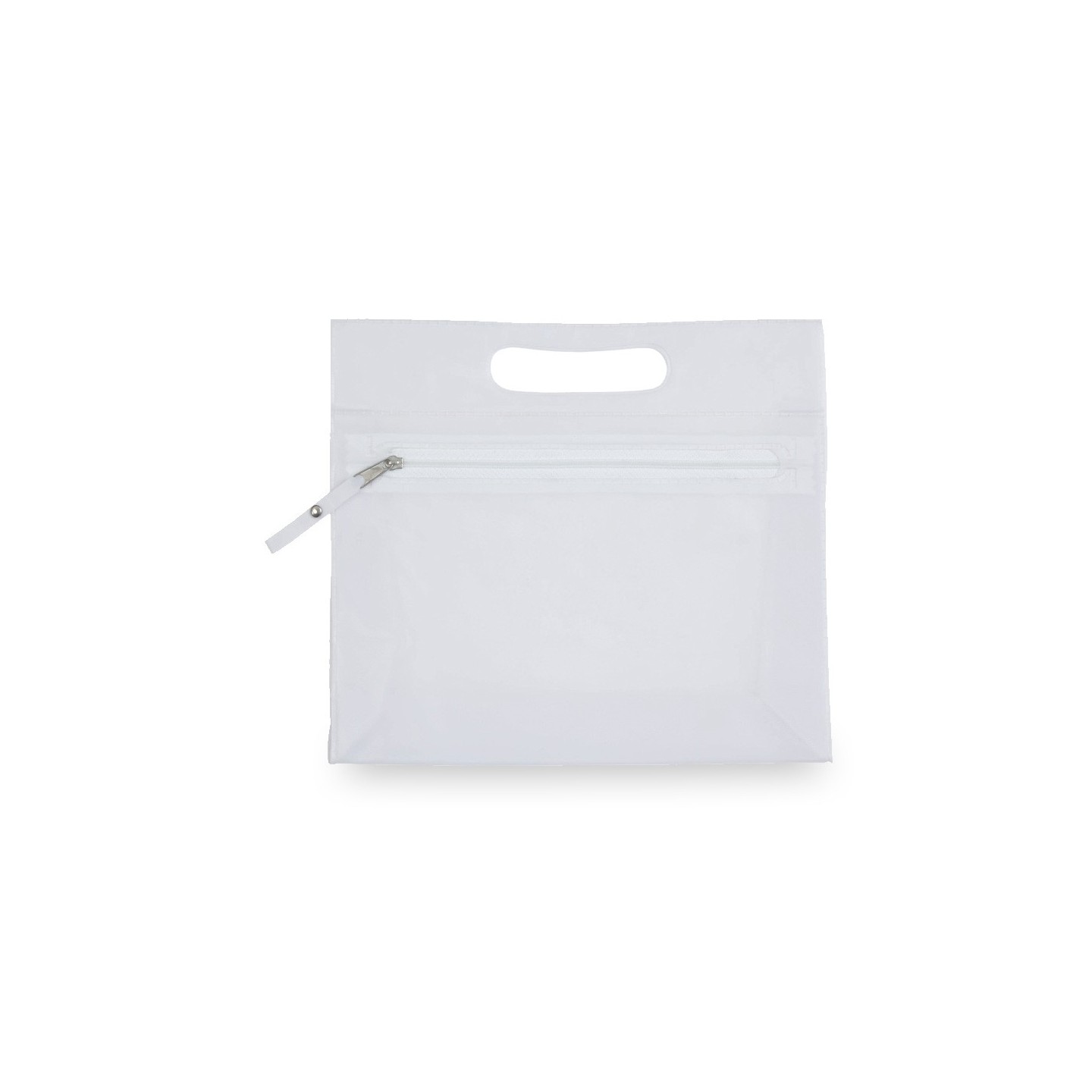 Neceser multiusos en PVC translúcido y vivos colores con asa troquelada y cierre de cremallera. Práctico y resistente para llevar tus artículos de aseo a cualquier lugar.