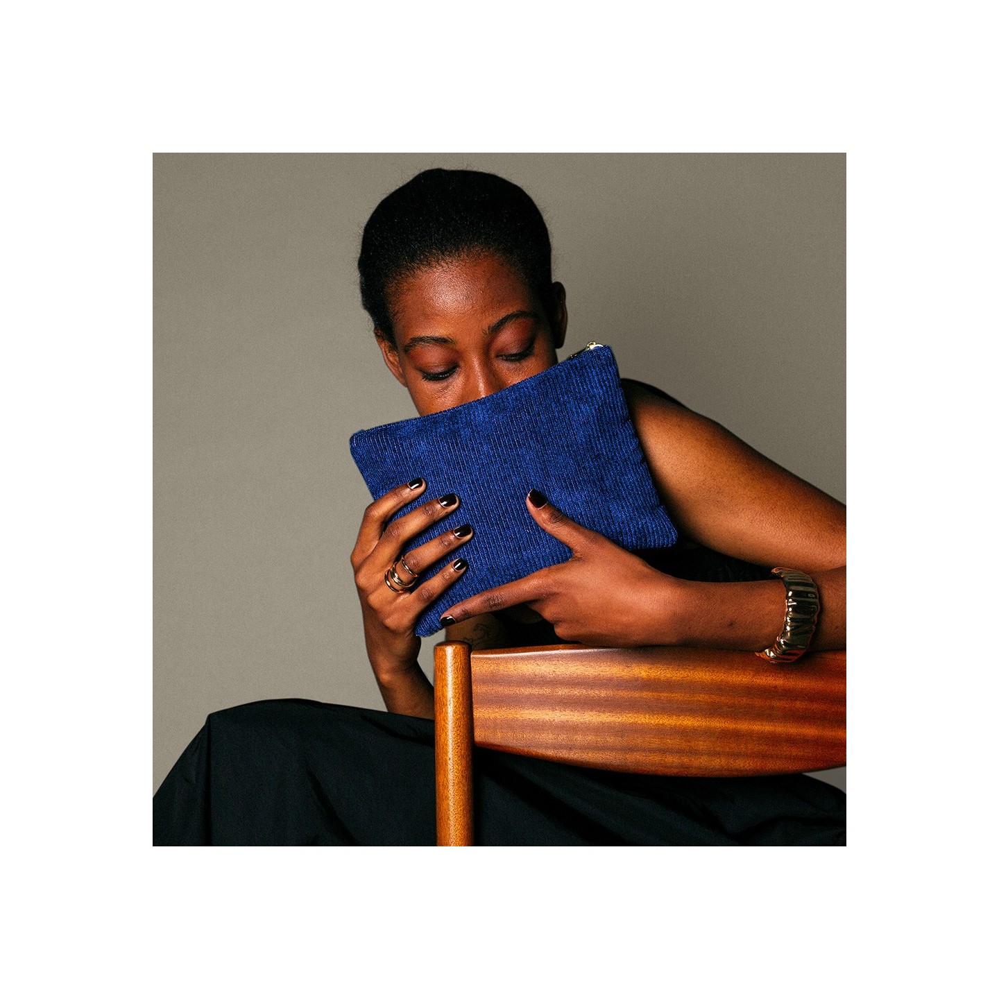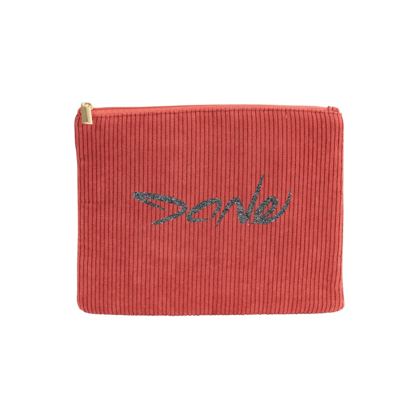 Neceser KOROI en pana de poliéster, elegante y con cremallera dorada. Certificado REACH, personalizable con tu logotipo. Ideal para regalos sofisticados.