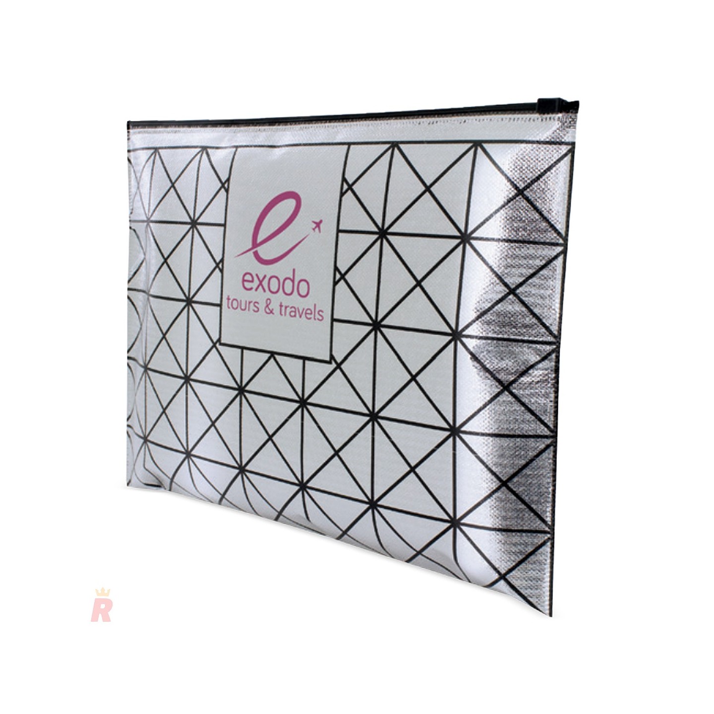 Elegante neceser de viaje de gran tamaño, fabricado en non woven laminado con acabado metalizado. Perfecto para personalizar con tu logotipo
