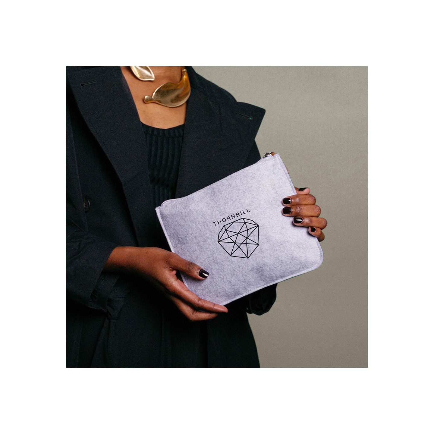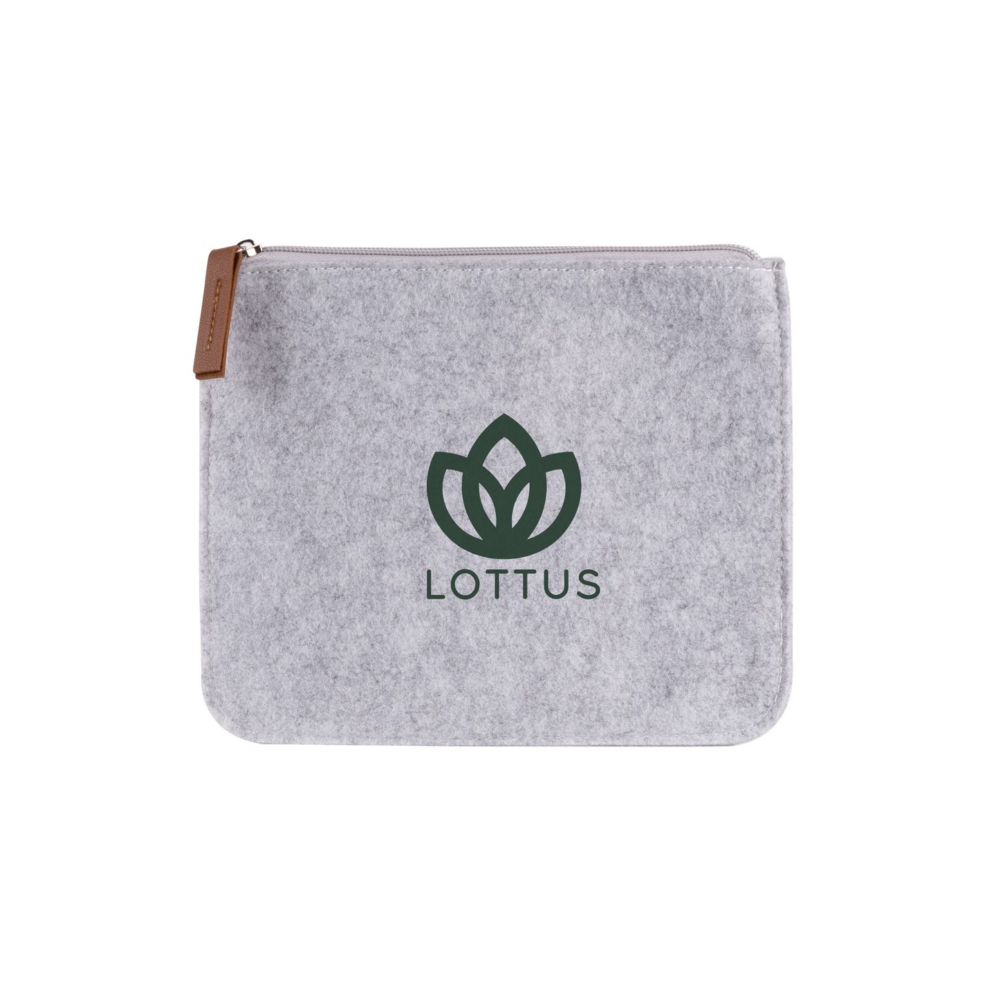 Neceser MAZE en fieltro RPET de 360 gr/m², con tirador abrefácil de PU. Certificado GRS y personalizable con tu logotipo. Ideal para promociones sostenibles.