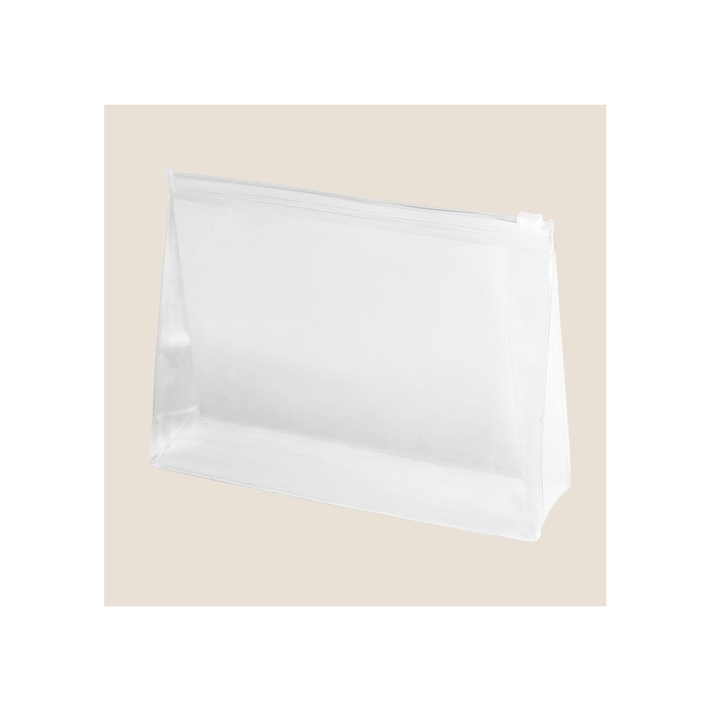 El Neceser Sofie es de PVC translúcido con cierre zip. Certificaciones REACH y Low Cadmium. Elegancia y seguridad en cada viaje.