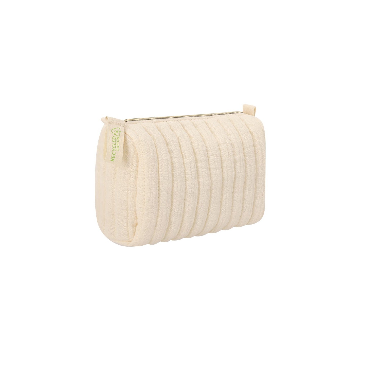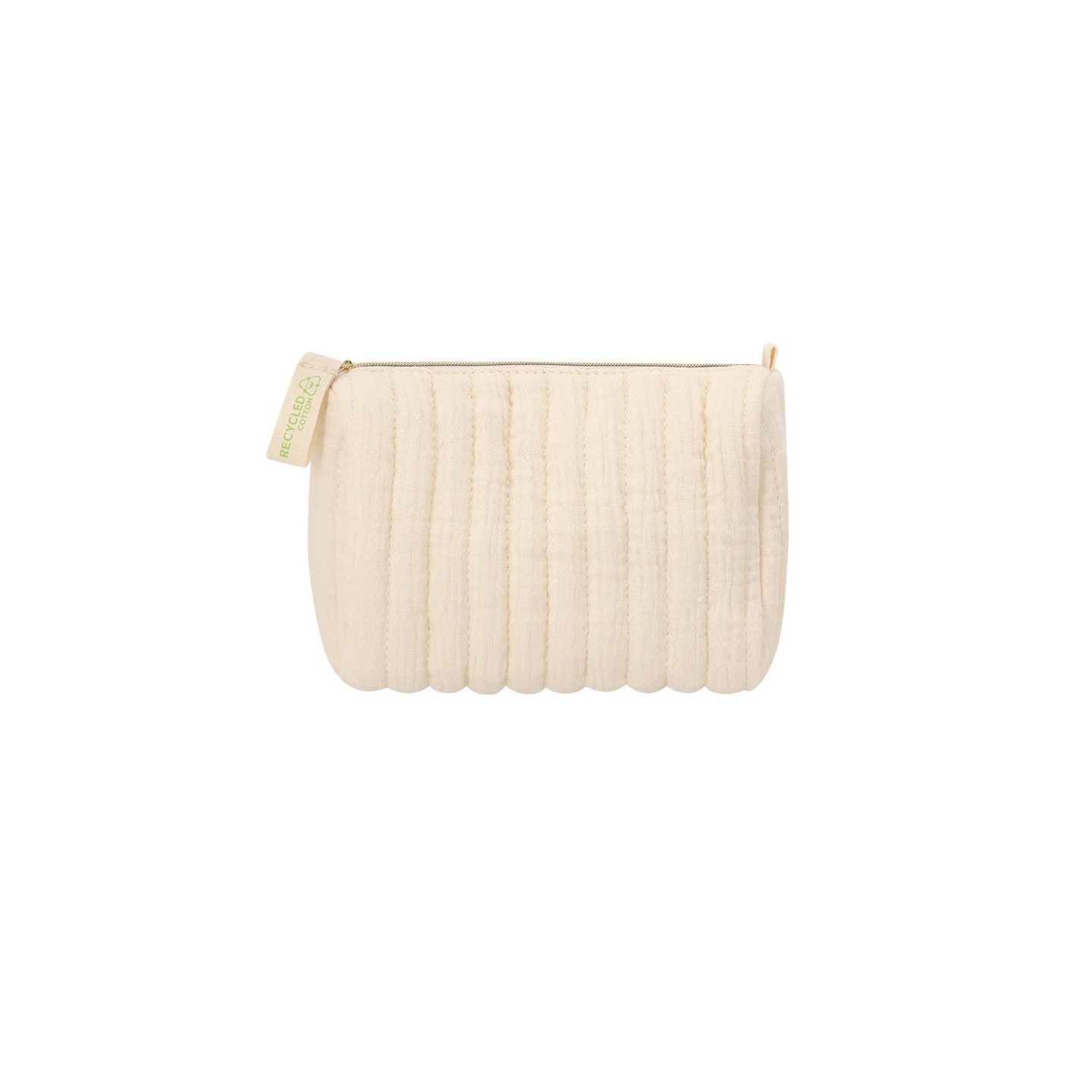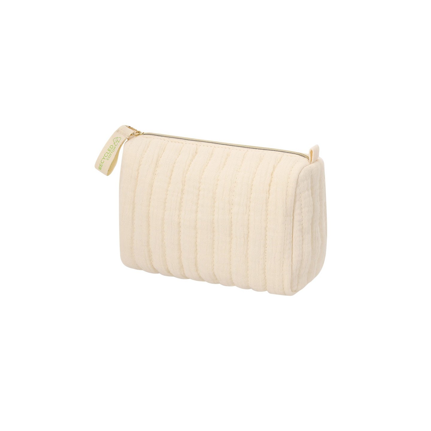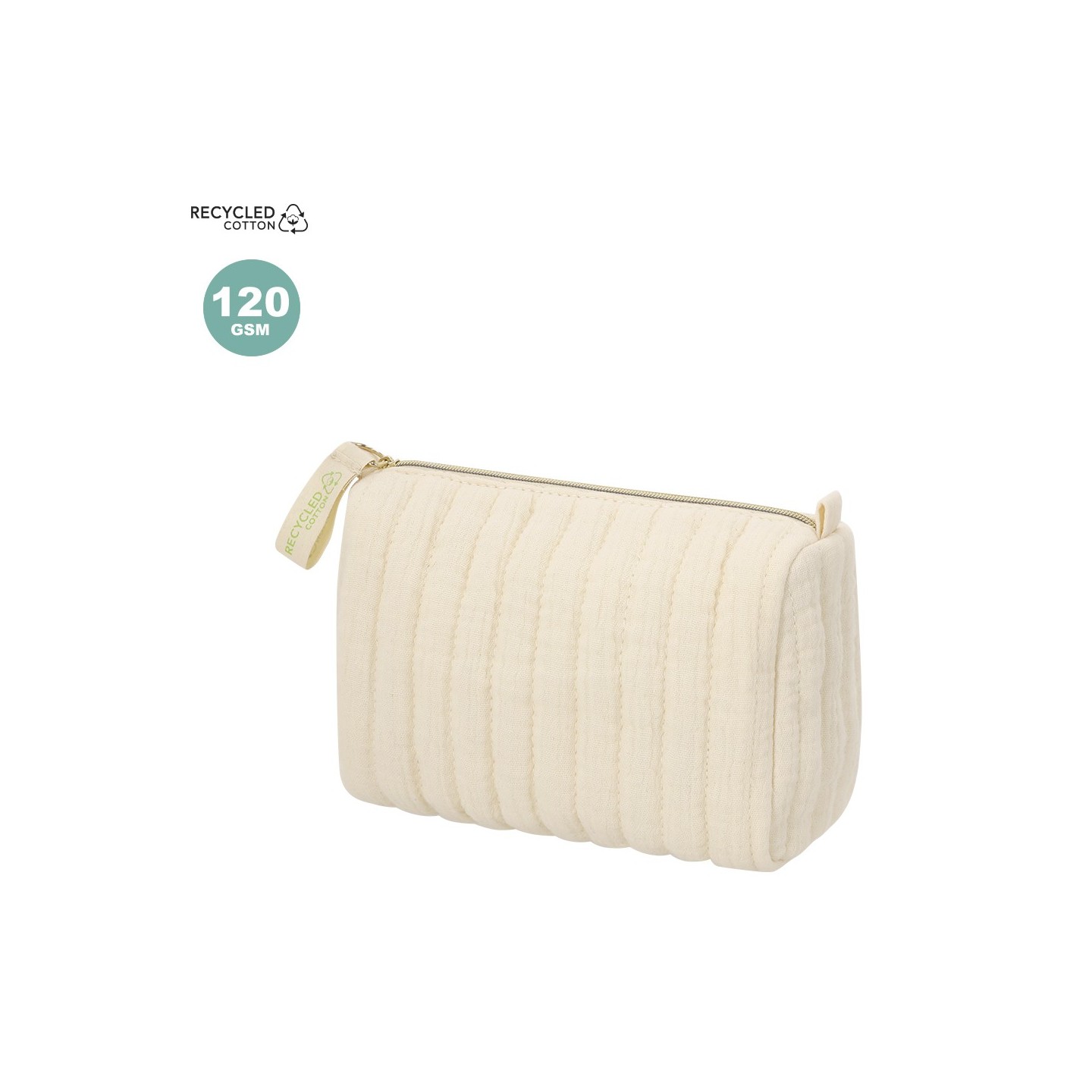 Neceser SUMTOR en algodón reciclado con diseño acolchado y forro interior. Incluye distintivo de algodón reciclado. Personalizable con tu logotipo.