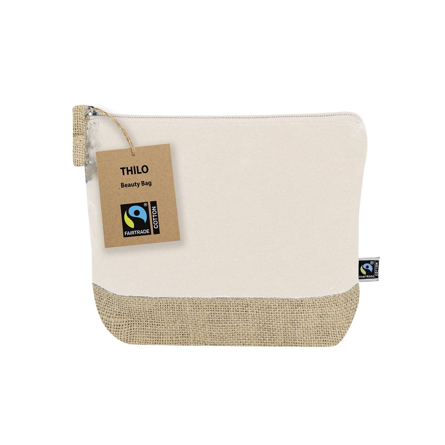 Neceser THILO FAIRTRADE fabricado en algodón y yute laminado certificado Fairtrade. Con cremallera, tirador metálico y personalizable con tu logotipo.