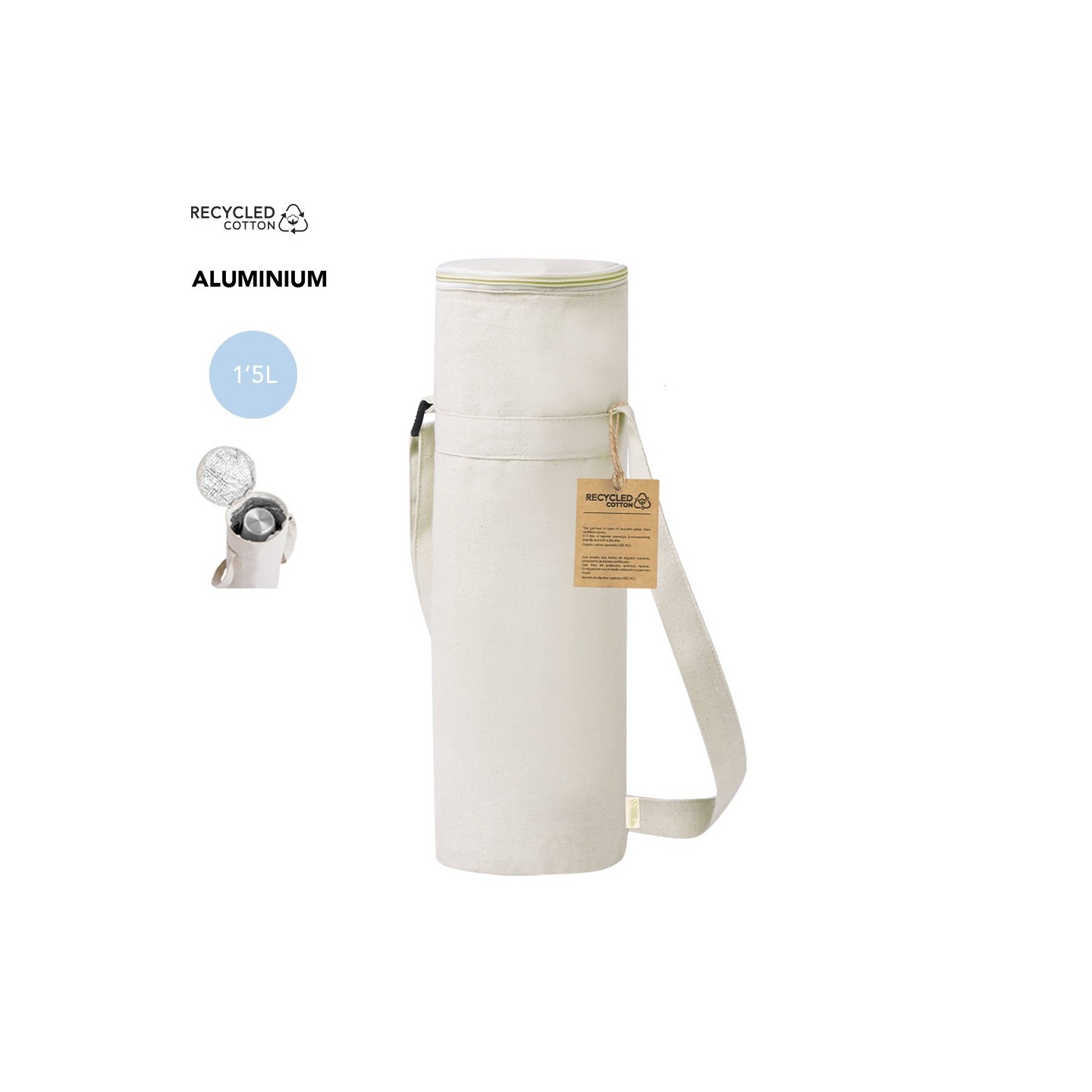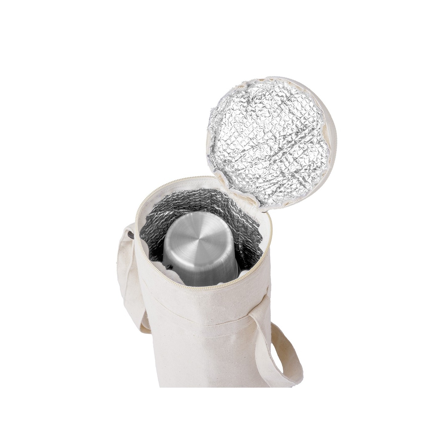 Esta bolsa térmica está confeccionada en algodón 100% reciclado, lo que la convierte en una opción ecoamigable y responsable con el medio ambiente. Su diseño elegante y minimalista en tono natural agrega un toque de sofisticación a cualquier ocasión.
