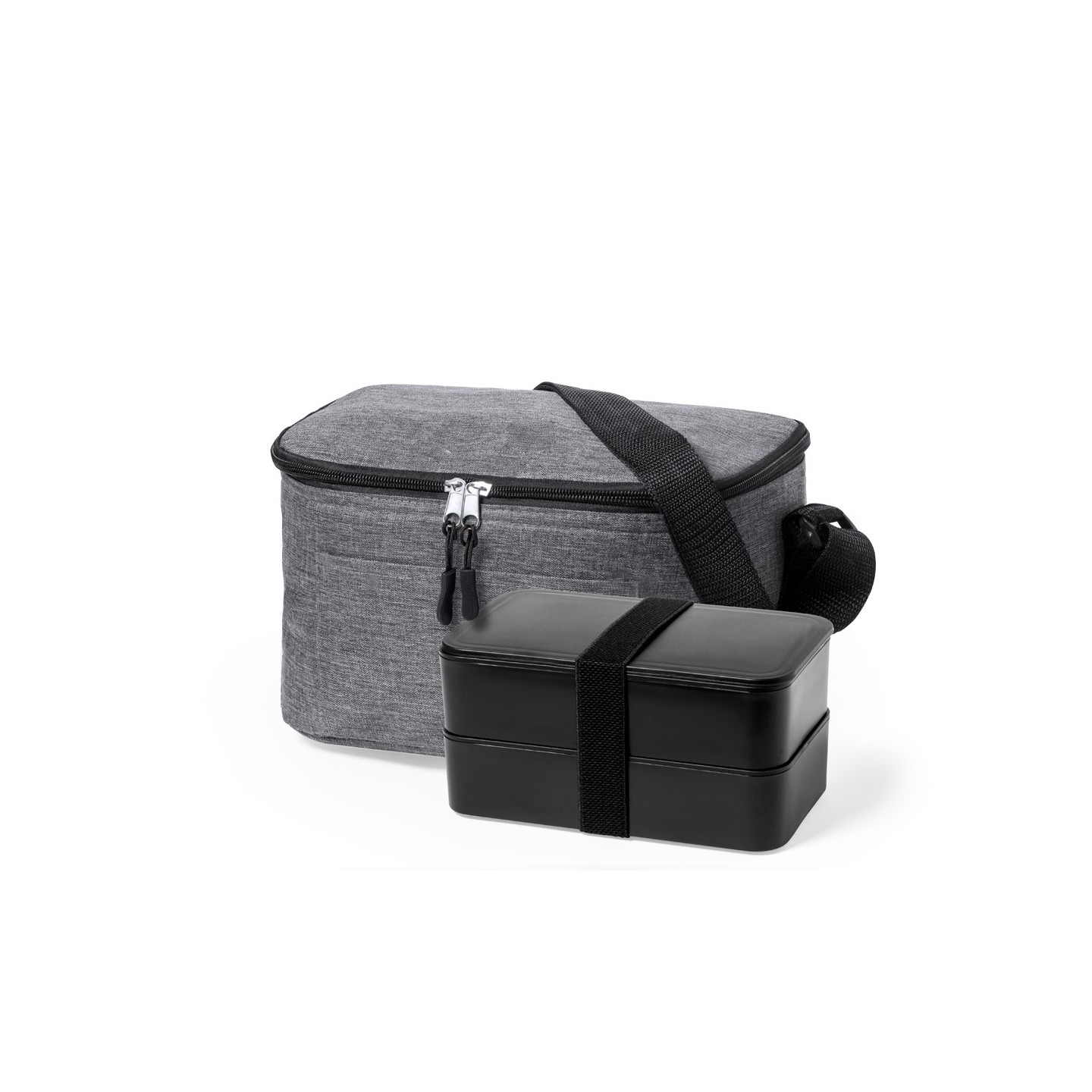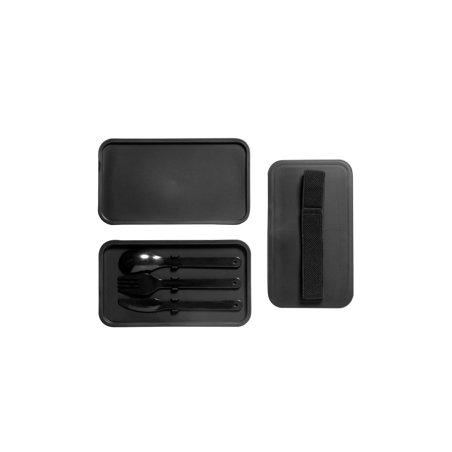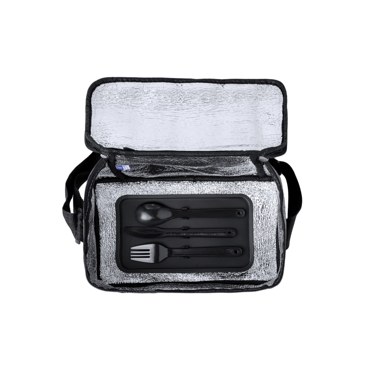 Como un bono adicional, la Nevera Glaxia viene acompañada de una fiambrera con dos compartimentos de 700 ml y cubiertos fabricados en PP reciclado de color negro, brindando una solución completa y conveniente para tus necesidades de almuerzo o picnic.