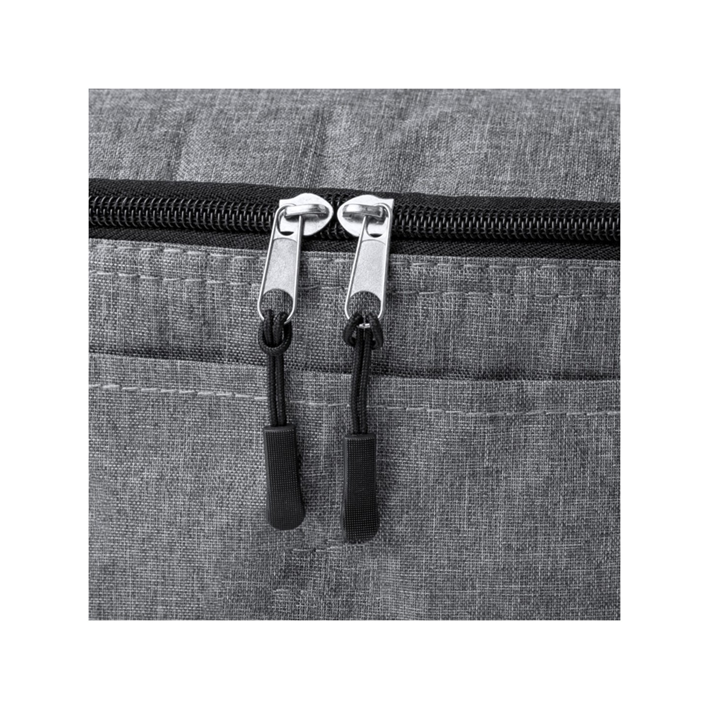 Su diseño cuenta con un atractivo efecto melange que le confiere un toque moderno y sofisticado. En su interior, encontrarás un amplio compartimento principal con cierre de cremallera y forro interior de aluminio, manteniendo tus alimentos frescos por más tiempo.