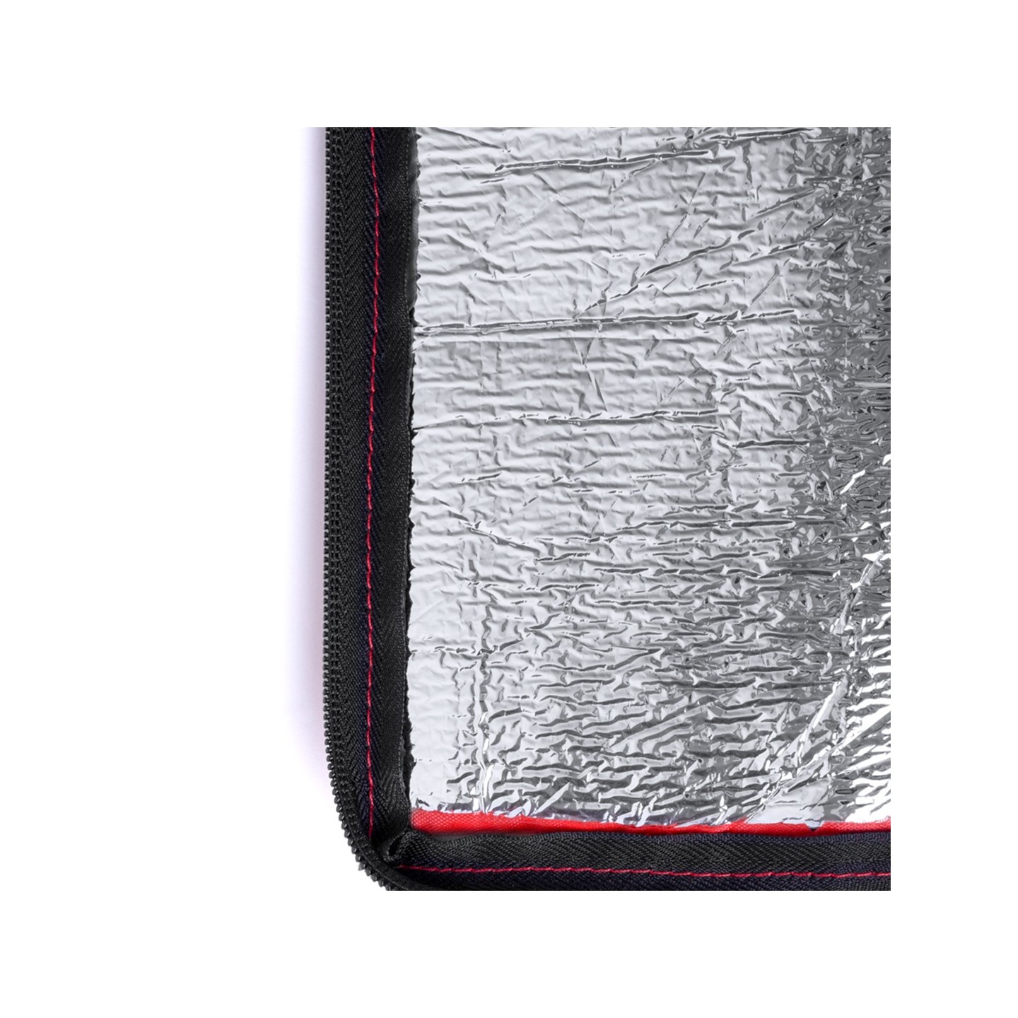 - Material: Los interiores isotérmicos están hechos de materiales aislantes como espuma de polietileno, revestidos con una capa de aluminio o poliéster metalizado. Este revestimiento reflectante ayuda a mantener la temperatura interna de la bolsa.
