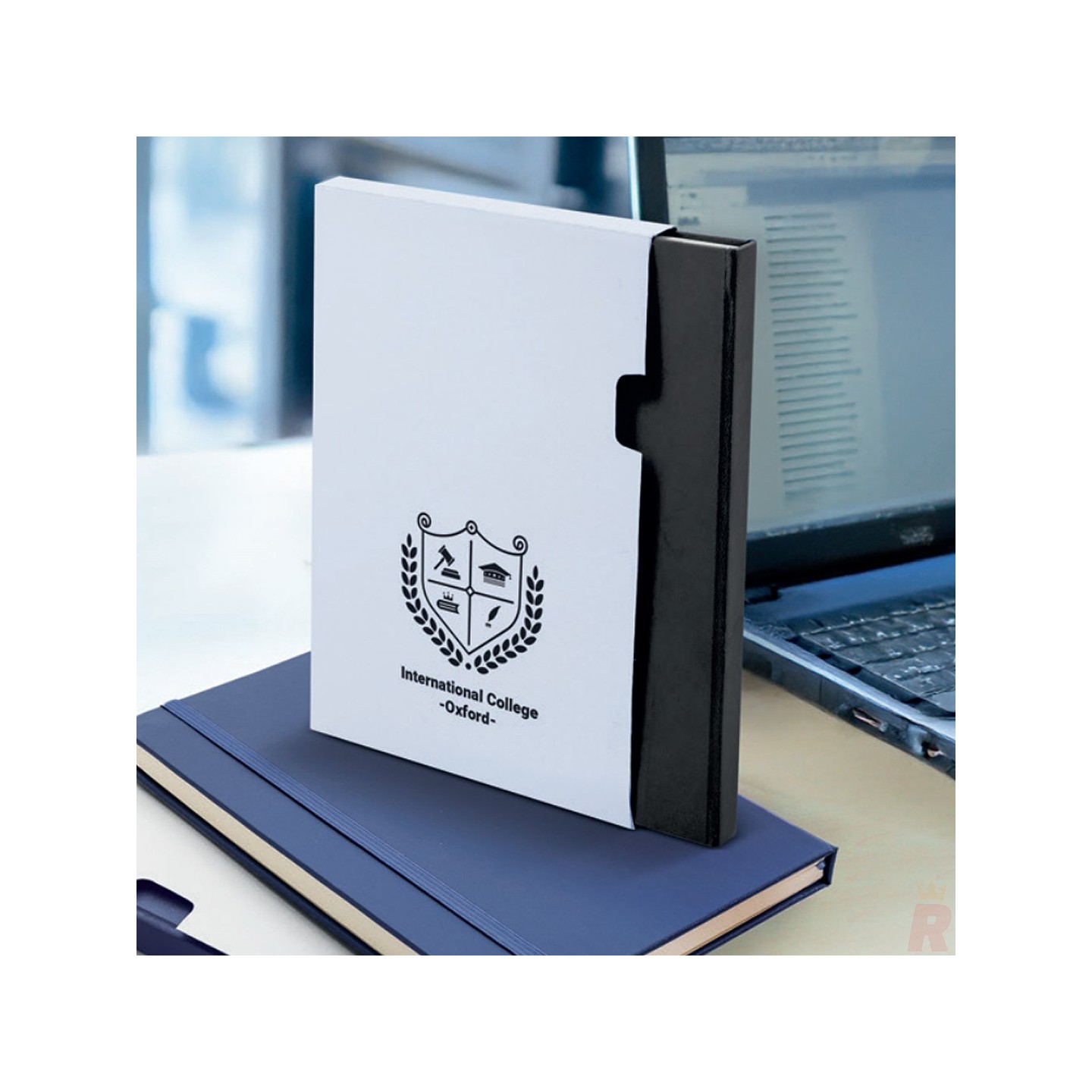 Para un toque adicional de estilo y comodidad, incorpora un marcador de página, facilitando la organización y el acceso rápido a las notas más importantes. Todo ello presentado en una funda de presentación en color blanco, lo que lo convierte en el detalle ideal para personalizar con el logotipo de tu empresa y potenciar la visibilidad de tu marca.