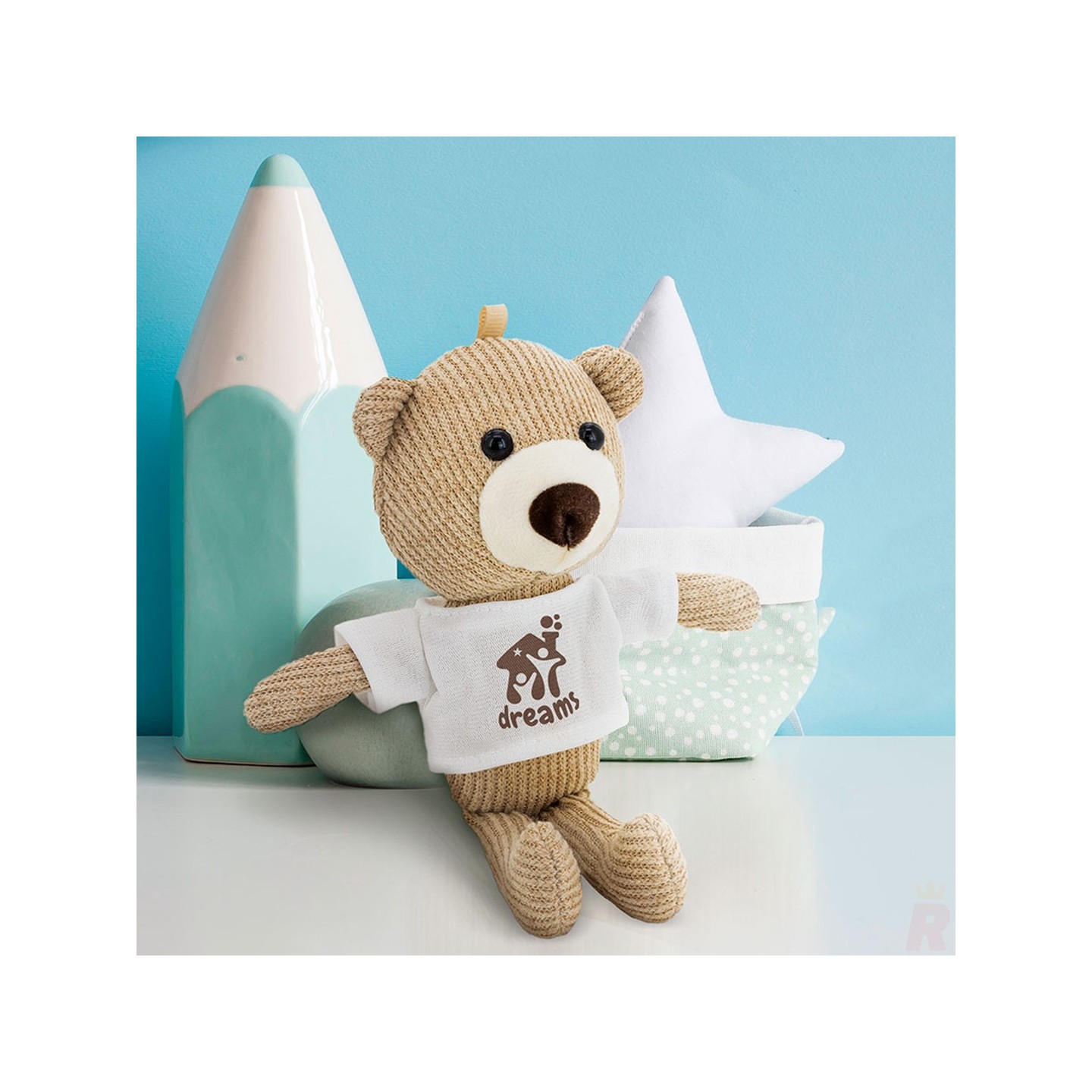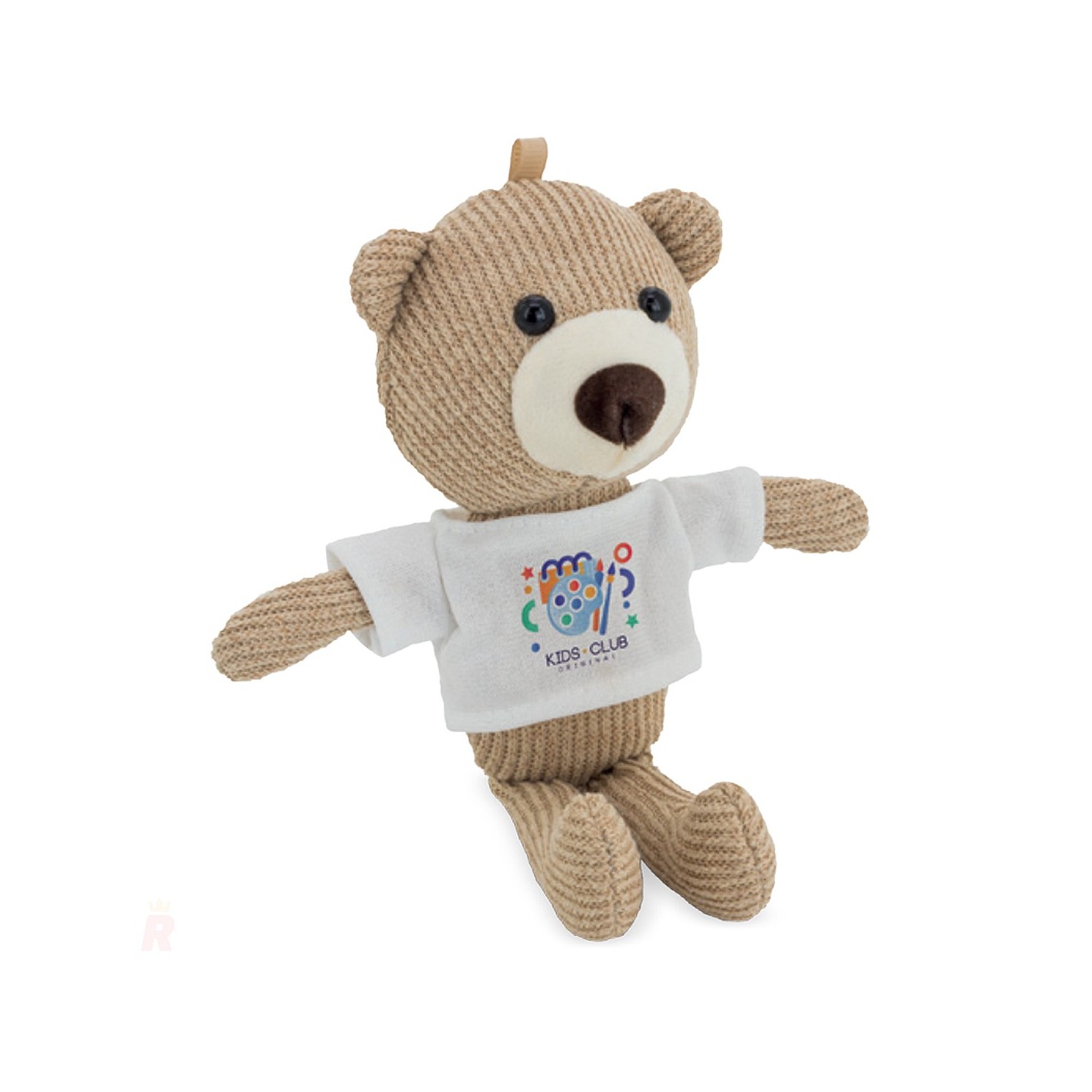 Adorable osito de poliéster con camiseta personalizable. Ideal para regalos promocionales que destacan tu marca con calidez y ternura