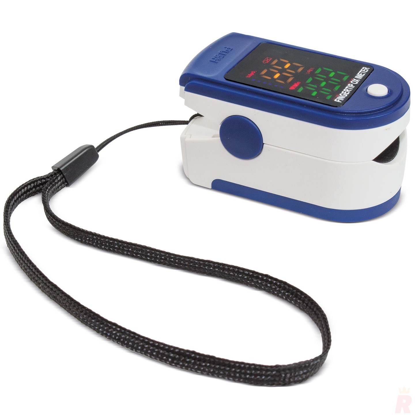 Oxímetro y pulsómetro compacto, ideal para medir oxígeno en sangre y frecuencia cardíaca. Personalizable con logotipo, perfecto como regalo promocional