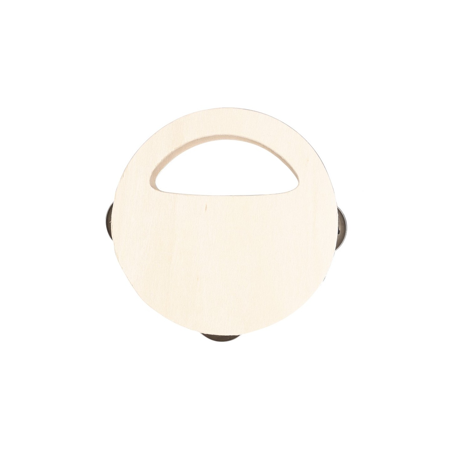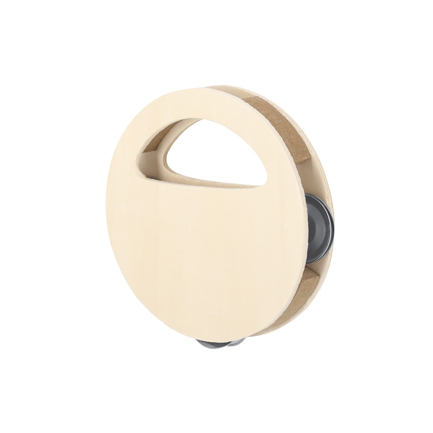 Pandereta de madera circular con asa para un fácil agarre y 3 platillos dobles metálicos. Amplia superficie de impresión. Personalizable con logotipo. Ideal para eventos y promociones.