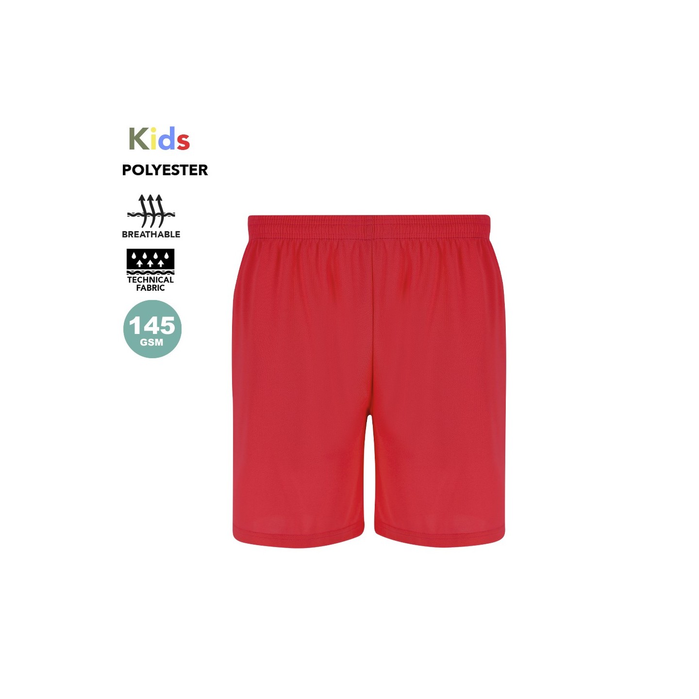 Pantalón corto infantil RUDIG, cómodo y transpirable, con cintura ajustable, bolsillos laterales y tejido técnico. Personalízalo con tu logotipo.