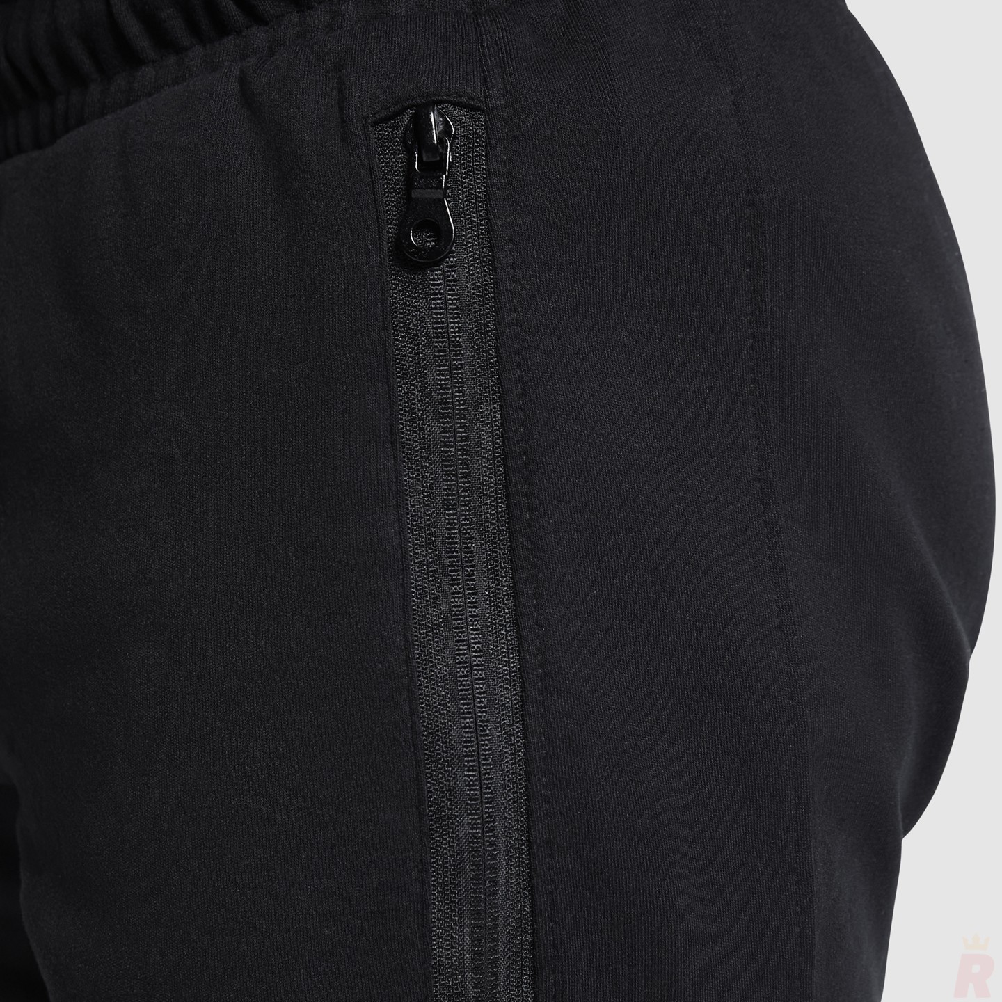 La funcionalidad también destaca en sus detalles: dos bolsillos laterales con cremallera invertida a tono permiten guardar objetos con seguridad y estilo, mientras que en la parte trasera incorpora un bolsillo con broche de presión para mayor comodidad. Además, el detalle de bragueta cosida como adorno aporta un acabado visual más estructurado. Incluye etiqueta removible para facilitar la personalización de marca sin costuras adicionales.
