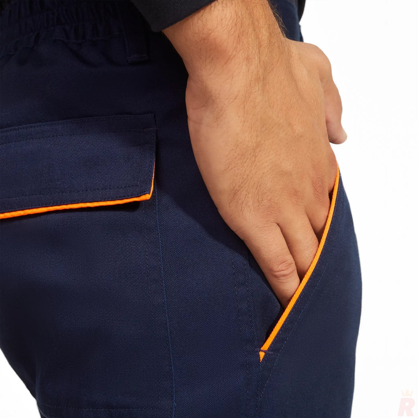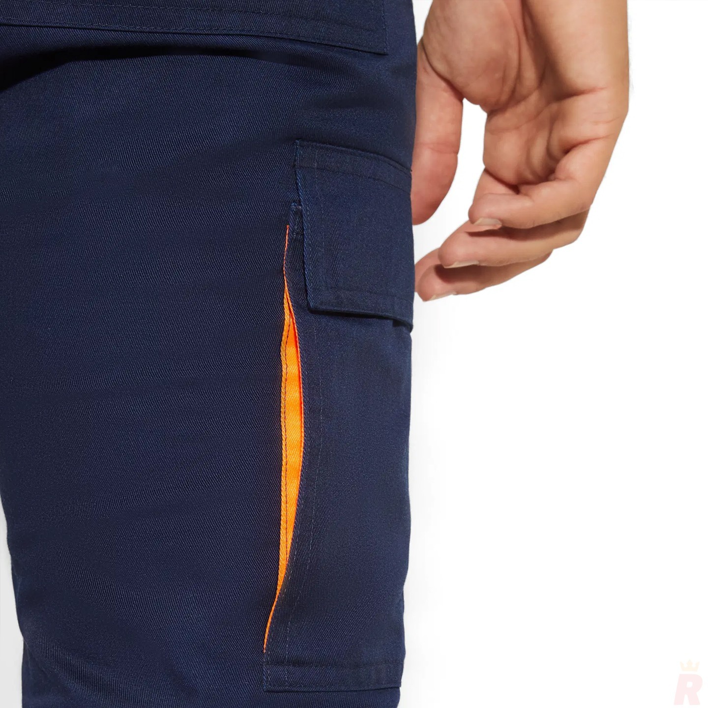 En cuanto al diseño funcional, cuenta con una cintura ajustable con elástico trasero para un mejor ajuste, dos bolsillos frontales, dos traseros con tapeta y cierre de velcro y dos bolsillos laterales tipo cargo, también con tapeta y velcro. Los detalles fluorescentes en los bordes de los bolsillos aportan un acabado moderno y profesional.