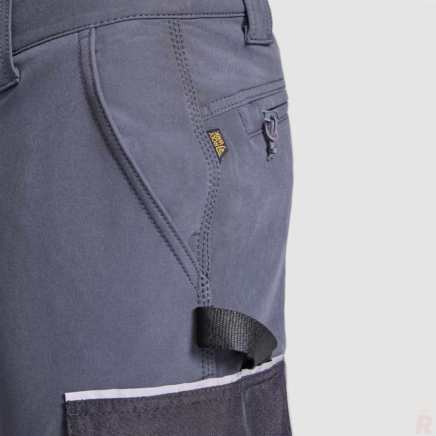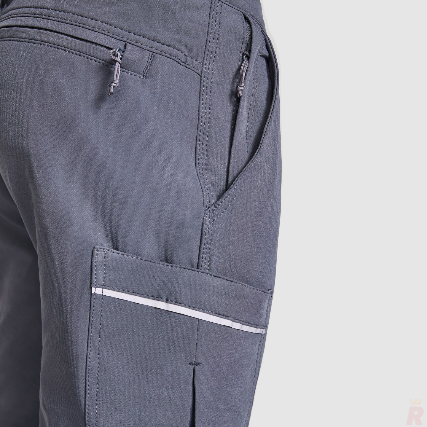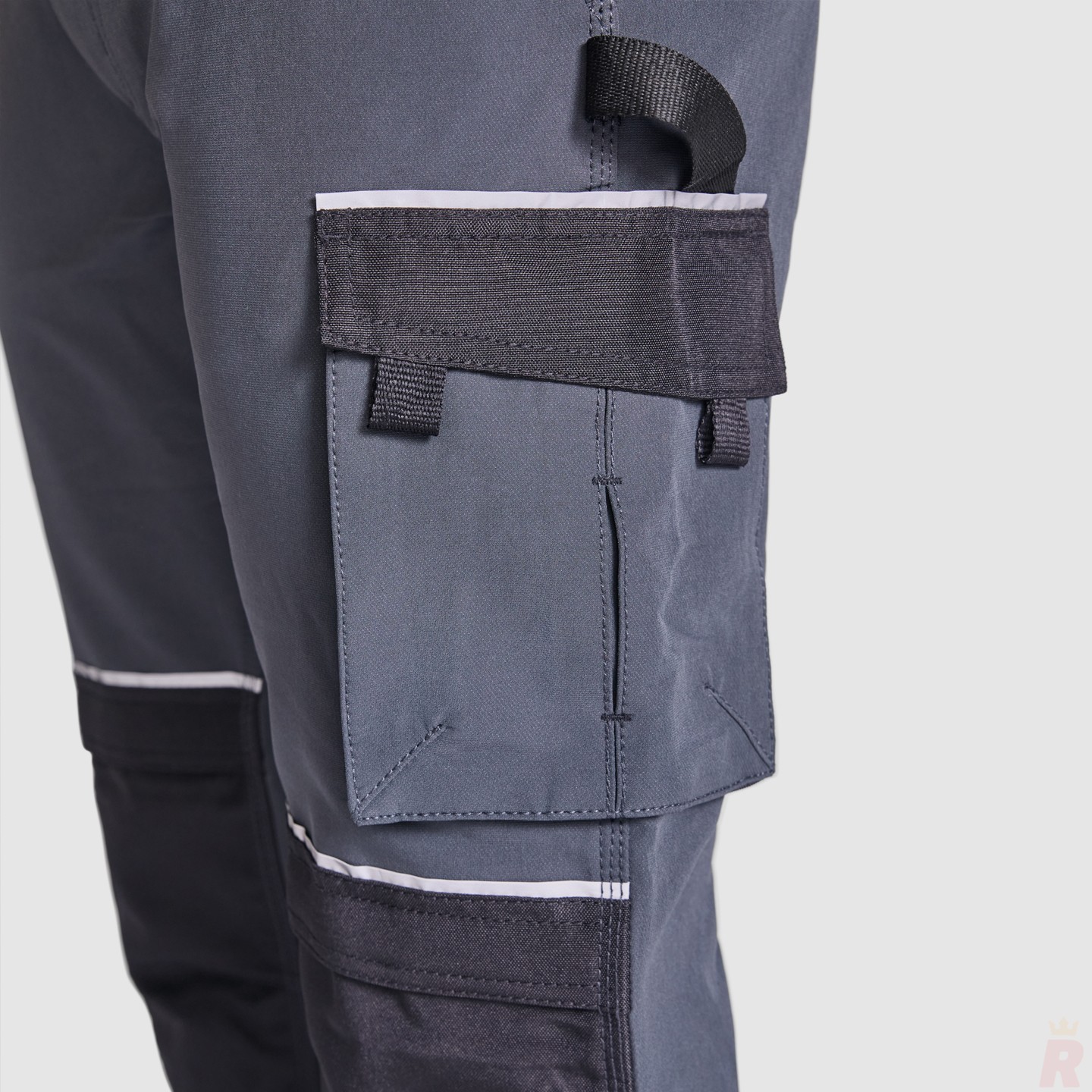 Pantalón técnico stretch unisex con multibolsillos, refuerzos, tejido transpirable y cintas reflectantes. Ideal para trabajo industrial y personalizado con logotipo