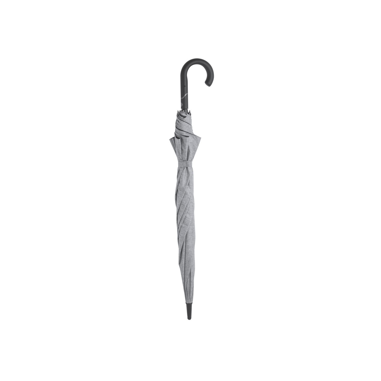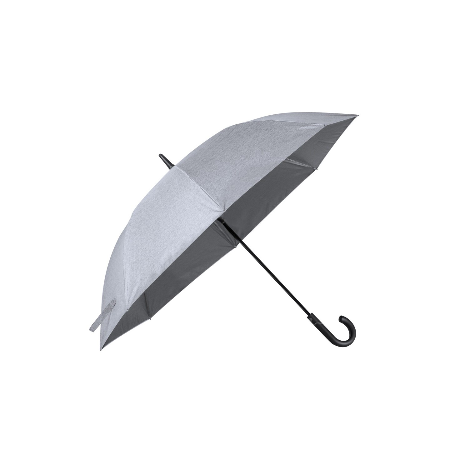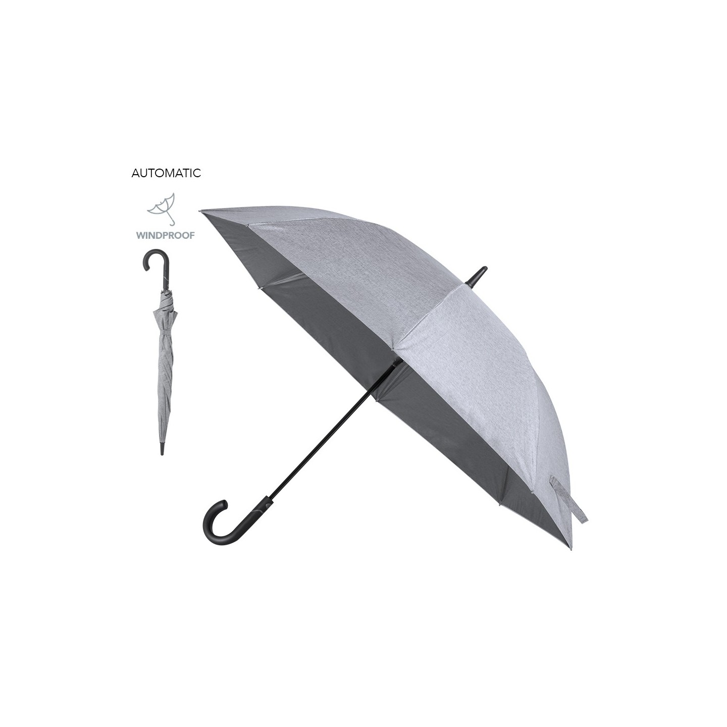 Fabricado en resistente material poliéster 150D y disponible en un sofisticado tono gris jaspeado, el Paraguas Dewey combina estilo y durabilidad a la perfección. Su apertura automática y sus varillas de fibra de vidrio garantizan una experiencia de uso suave y sin complicaciones.