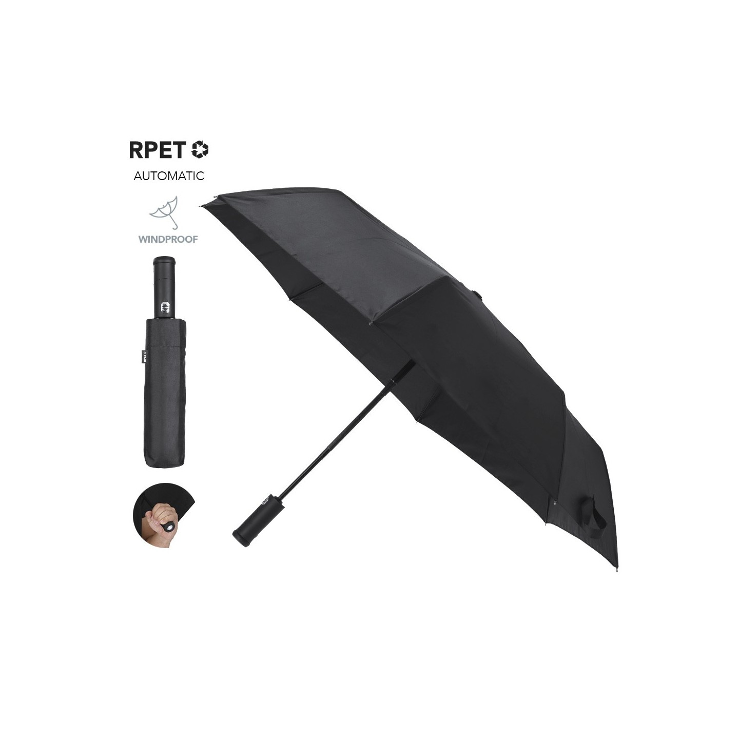 Además, el Paraguas Pulsak incluye un distintivo RPET en su funda, resaltando su compromiso con el medio ambiente y su fabricación sostenible. Este detalle no solo añade un toque estético, sino que también proporciona información sobre el impacto positivo de tu elección de producto.